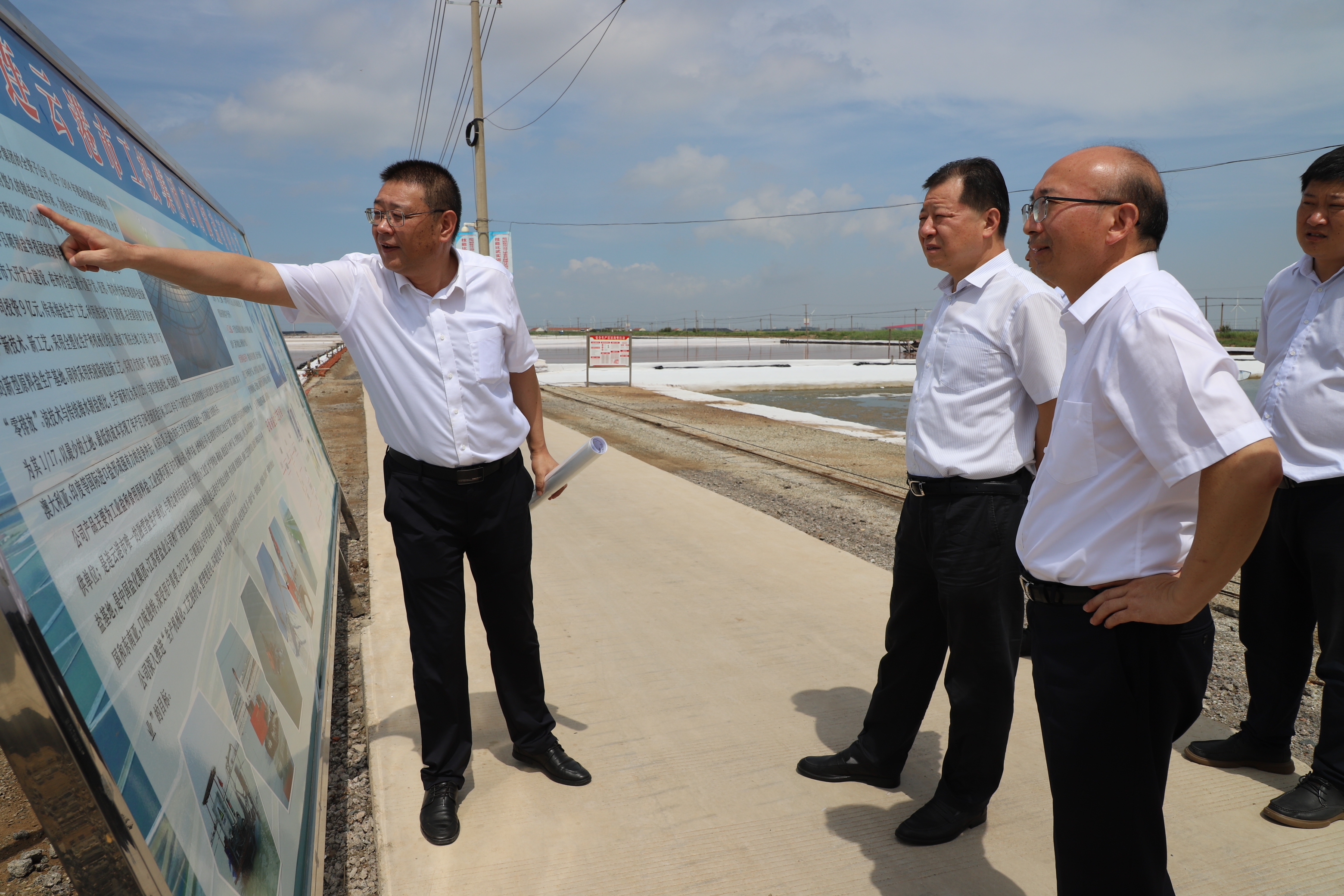 8月2日上午,连云港市副市长高圣华在华体会(中国)公司党委书记、董事长丁锐的陪同下调研日晒制盐生产情况。市政府办公室副主任孙京海、秘书八处相关负责同志,灌西投资公司负责人参加调研。