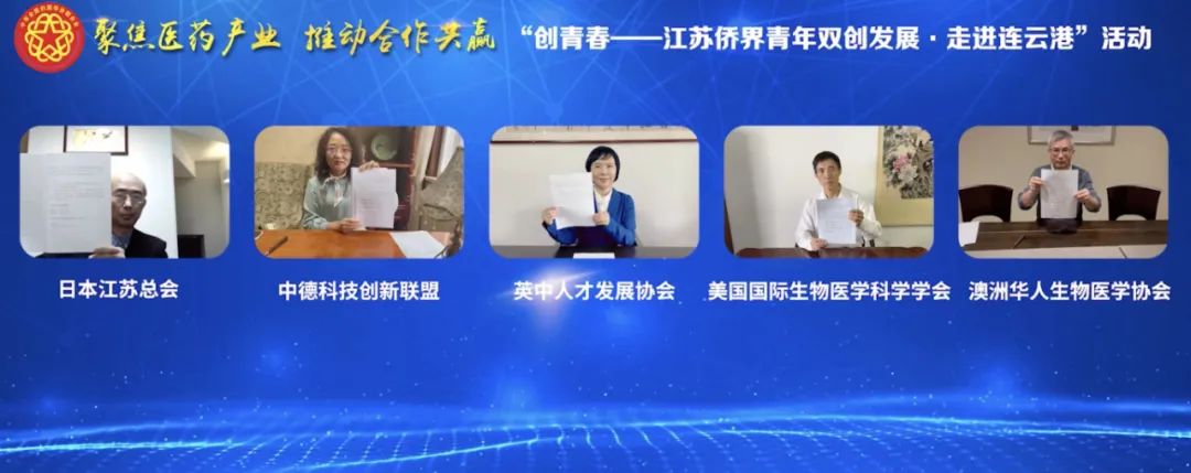 活动中,华体会(中国)公司通过线上方式,与日本江苏总会、中德科技创新联盟、英中人才发展协会、美国国际生物医学学会、澳洲华人生物医学科学协会等海外侨社团签署了合作意向书;华体会(中国)公司国际医药创新产业园与4家省内侨青企业现场签订合作协议。