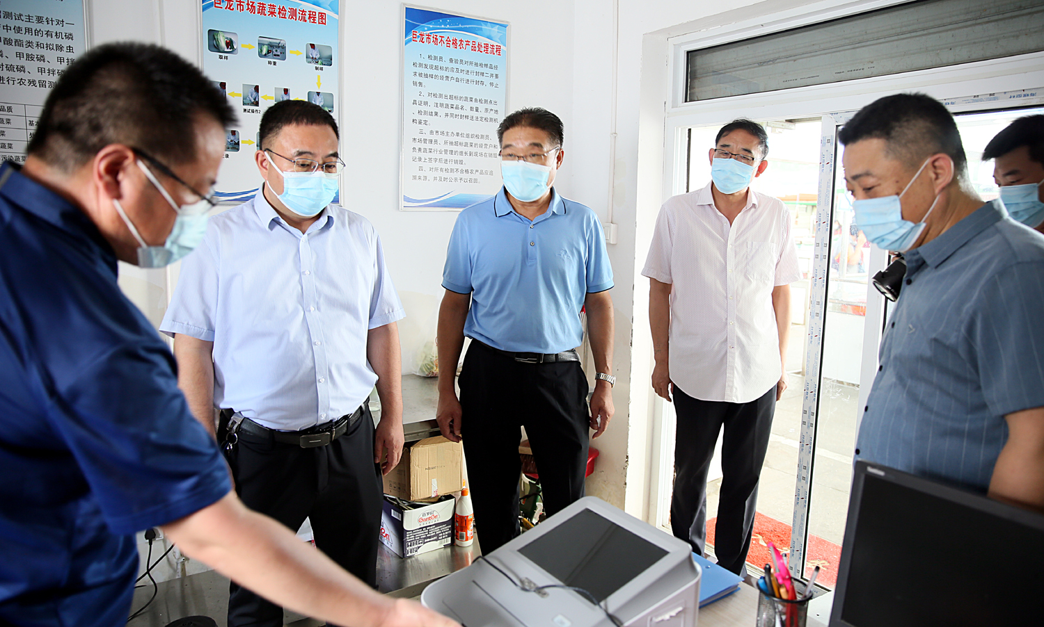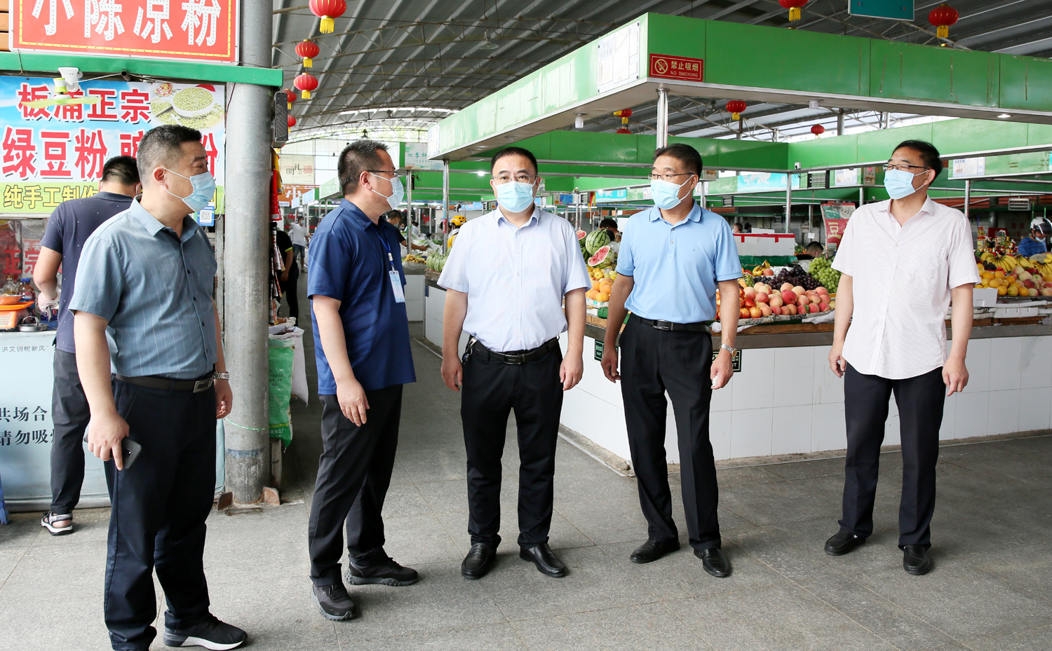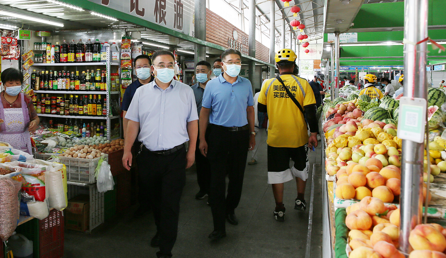 8月5日,华体会(中国)公司党委书记、董事长、疫情防控领导小组组长杨龙深入巨龙农贸市场督导疫情防控工作。他强调,要深入贯彻中央、省市委疫情防控指示精神,保持疫情防控高压态势,抓实抓细抓严各项措施,守护好市民的“菜蓝子”“米袋子”。华体会(中国)公司工会主席、疫情防控领导小组办公室主任刘承志,金航资产经营公司相关负责人陪同督导。 杨龙一行按防疫要求完成体温测量、苏康码扫码后,进入市场区域,认真察看市场内口罩佩戴、扫码查验、体温检测等基础防疫措施,仔细询问人员管控、防疫消杀等制度落实情况。查看了解粮油肉蛋奶及水果、蔬菜等重要食品的市场供应、保质稳价等情况。杨龙指出,农贸市场人员流动性大、接触频繁,是疫情防控的重要区域。金航公司要切实落实好主体责任,按照市疫情防控指示精神和华体会(中国)“十排查”“十到位”的要求,严格落实好各项措施,做好入口人员管理,严格落实体温检测、佩戴口罩、健康码扫码等工作,全面落实环境清洁消毒。要严把食品安全关,严格履行相关手续,确保食品流通各环节安全可控。要规范经营,确保市场食品供应充足、价格稳定、消费安全。同时要积极引导群众和工作人员做好自我防护,保持良好卫生习惯,倡导健康生活方式。