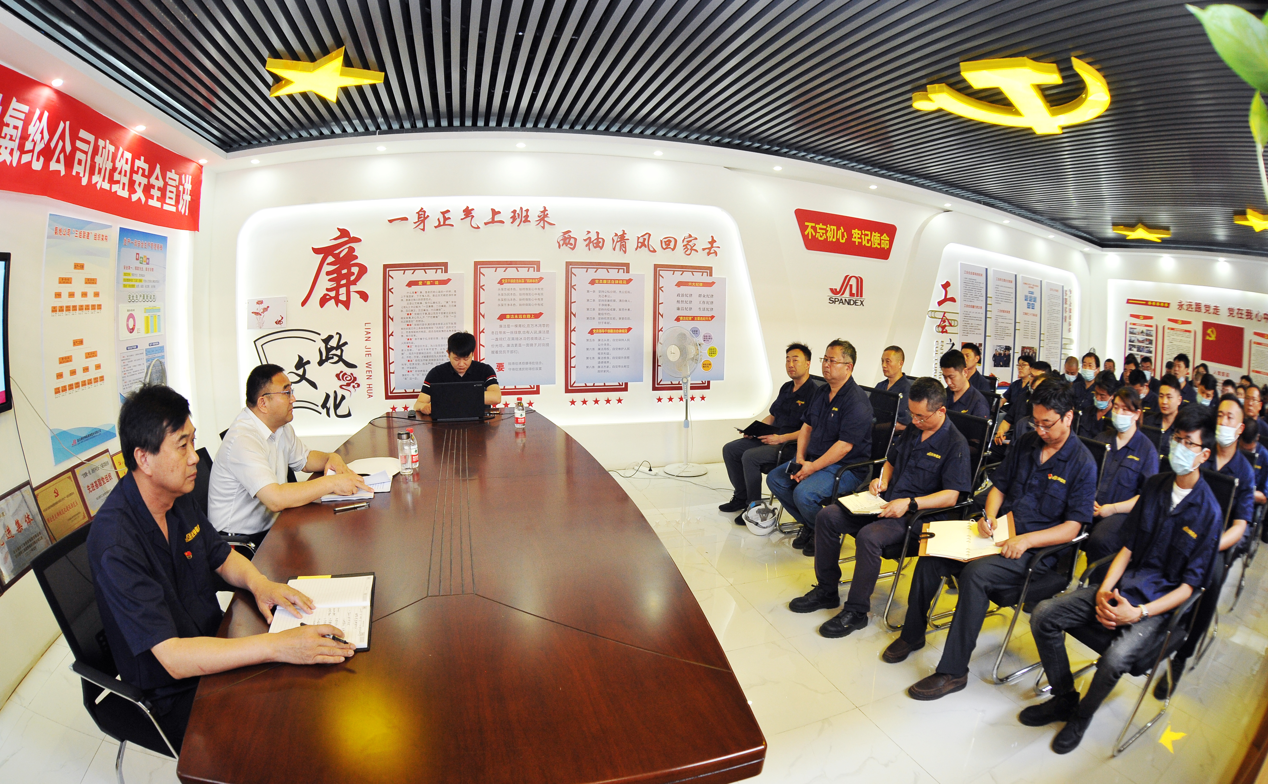 6月24日上午,华体会(中国)公司党委书记、董事长杨龙深入氨纶公司生产一部班组开展安全宣讲活动。氨纶公司安全管理人员及班组长50多人参加。