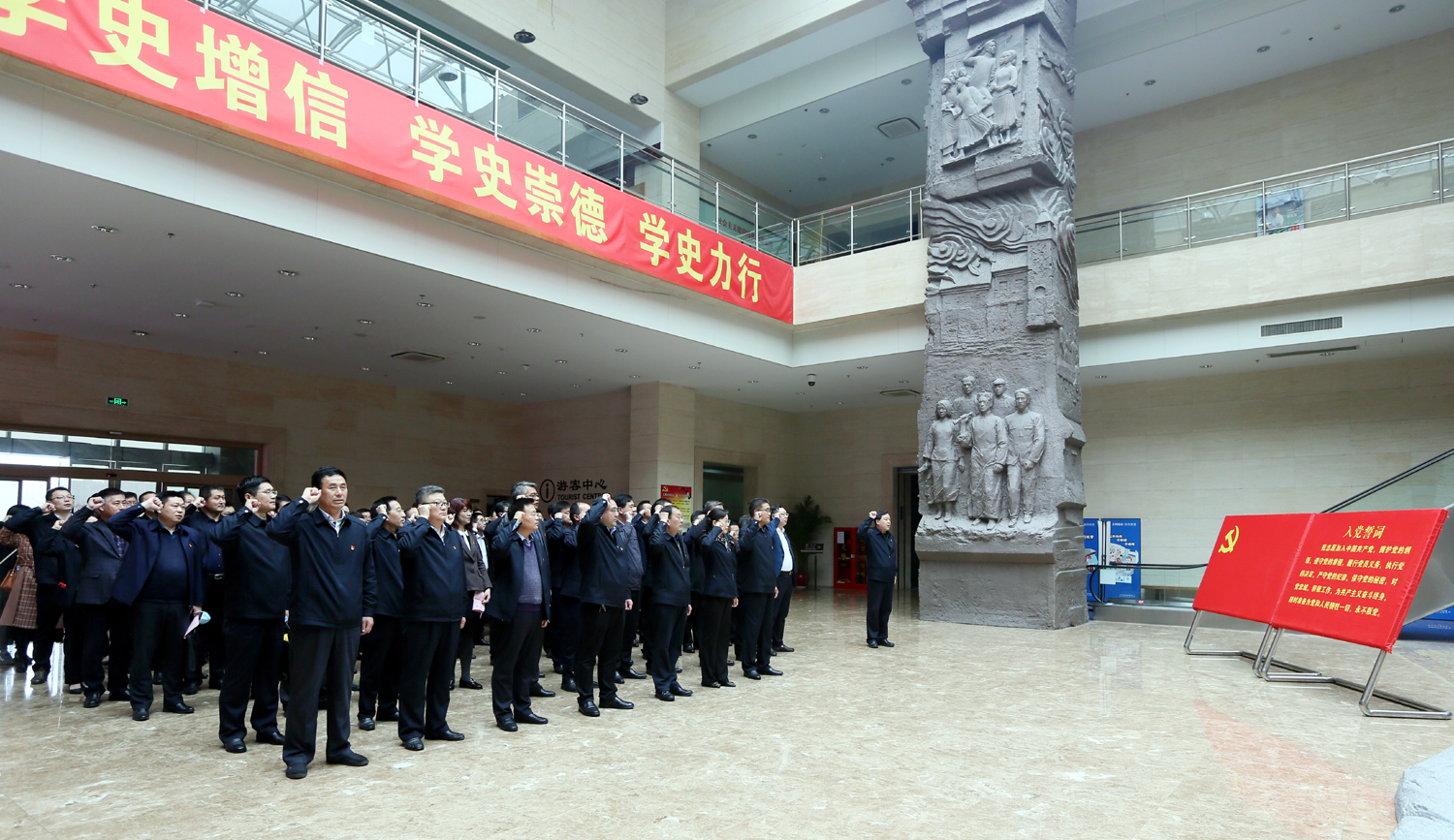 4月22日下午,华体会(中国)公司党委在市革命纪念馆举办“学史明理守初心、砥砺奋进担使命”党性教育实境课堂。华体会(中国)党委班子成员,各单位党建、纪检、工会分管领导、党群工作部(学教办)负责人,华体会(中国)总部助理以上管理人员80余人参加。 走进市革命纪念馆,在鲜红的党旗下,全体党员举起右拳,重温入党誓词,铿锵有力的誓词,进一步激发党员干部牢记党的初心和使命。在纪念馆展室,大家认真看、仔细听,通过历史文献、革命文物、新闻图片和视频资料,真切感受到中国共产党领导海属地区人民在五四运动、土地革命、抗日战争、解放战争时期血与火的革命斗争史。