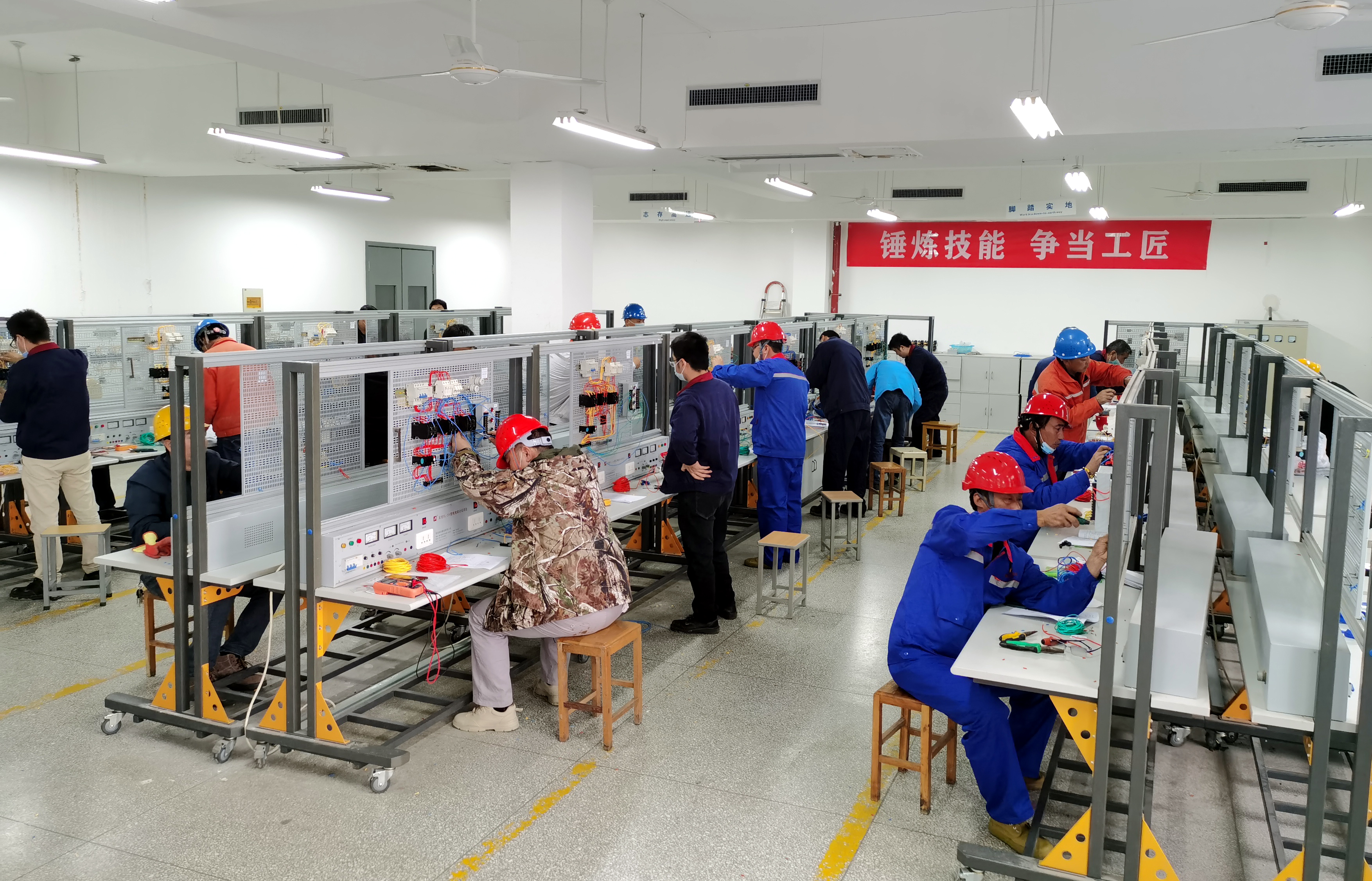 本次比赛分理论考试和实操考试两部分,理论考试采取闭卷考试形式,主要考核电力理论知识掌握程度,实操考试旨在考核电工的实践操作能力。来自12家单位的33名电工能手同台竞技,赛风格、比能力、学技术,集中体现了华体会(中国)产业工人精益求精的“工匠精神”和蓬勃向上的精神风貌。经过为期一天的角逐,供电公司的王建夺得一等奖;神特新材料公司徐武军、供电公司王程龙获得二等奖;氨纶公司的庄若愚和供电公司的靳国付、席建成分获三等奖。