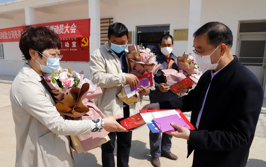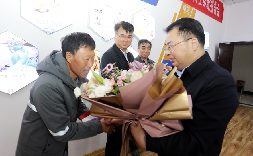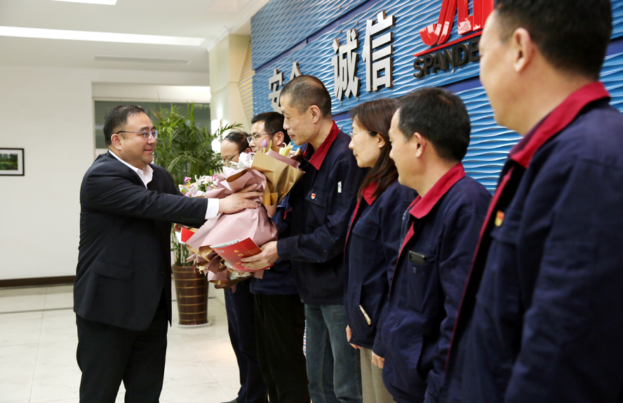 华体会(中国)公司领导进基层、到一线,与劳模先进面对面交流,倾听他们的心声和意见,感谢他们长期以来为企业发展作出的贡献,并献上一束鲜花、送上一封慰问信、发放一张蛋糕卡、特制一张健康卡、送上一份祝福。