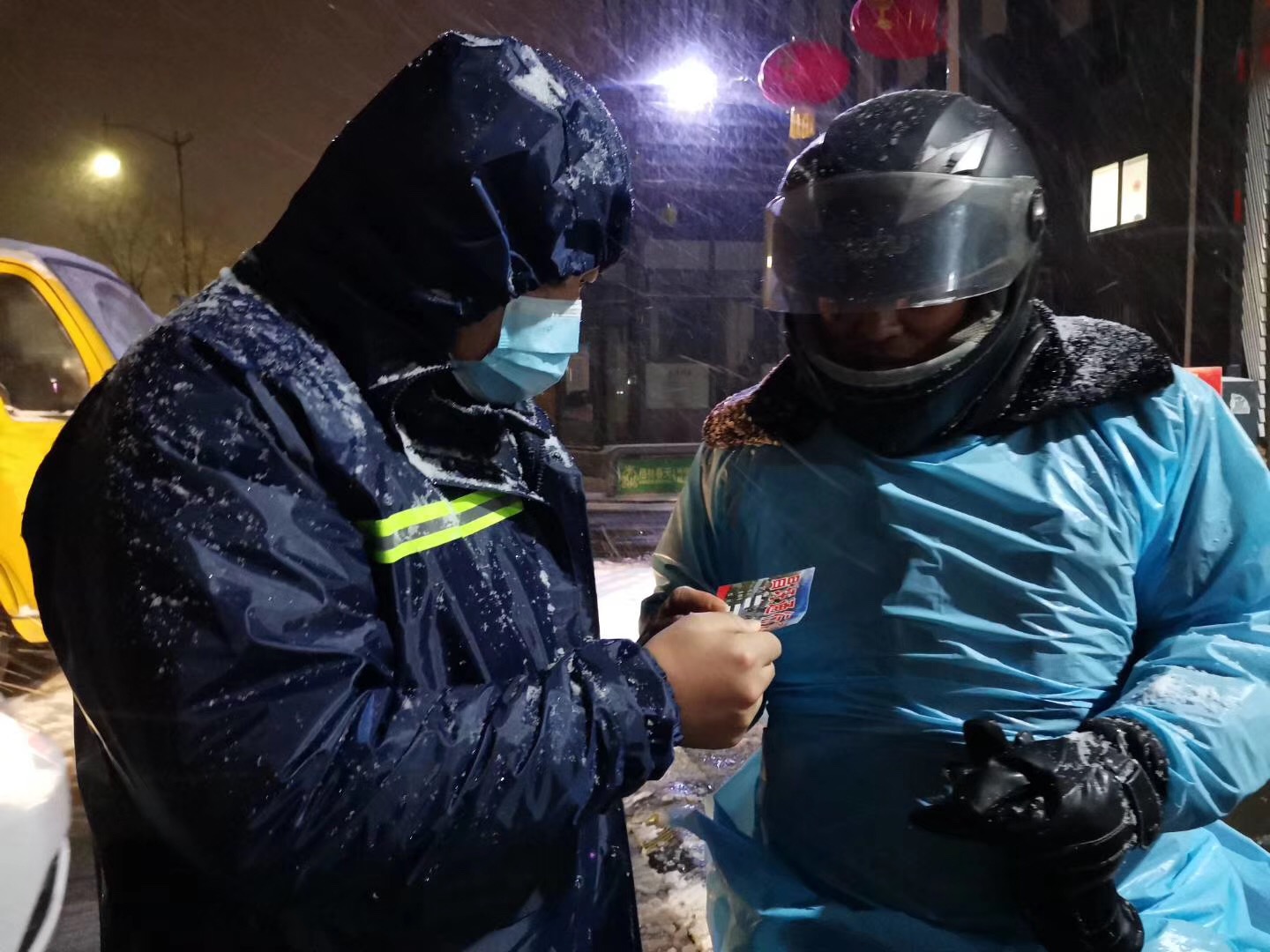 青口、台北、徐圩、灌西……坚强的工投人在风雪中坚守在各个交通要道,当好战“疫”一线的最佳“守门员”。他们与当地政府、社区紧密配合,实行24小时三班轮换执勤制度,昼夜坚守,步履不停,对来往车辆和人员进行疫情防控检查,对重点车辆和人员开展劝返工作,严防外部“输入性”和内部“扩散性”风险,“工作细一点、实一点,群众的危险性就会少一点,安全感就会多一点”这是他们说的最多的话,一个个坚守专注的身影,成为雪中最美的风景。