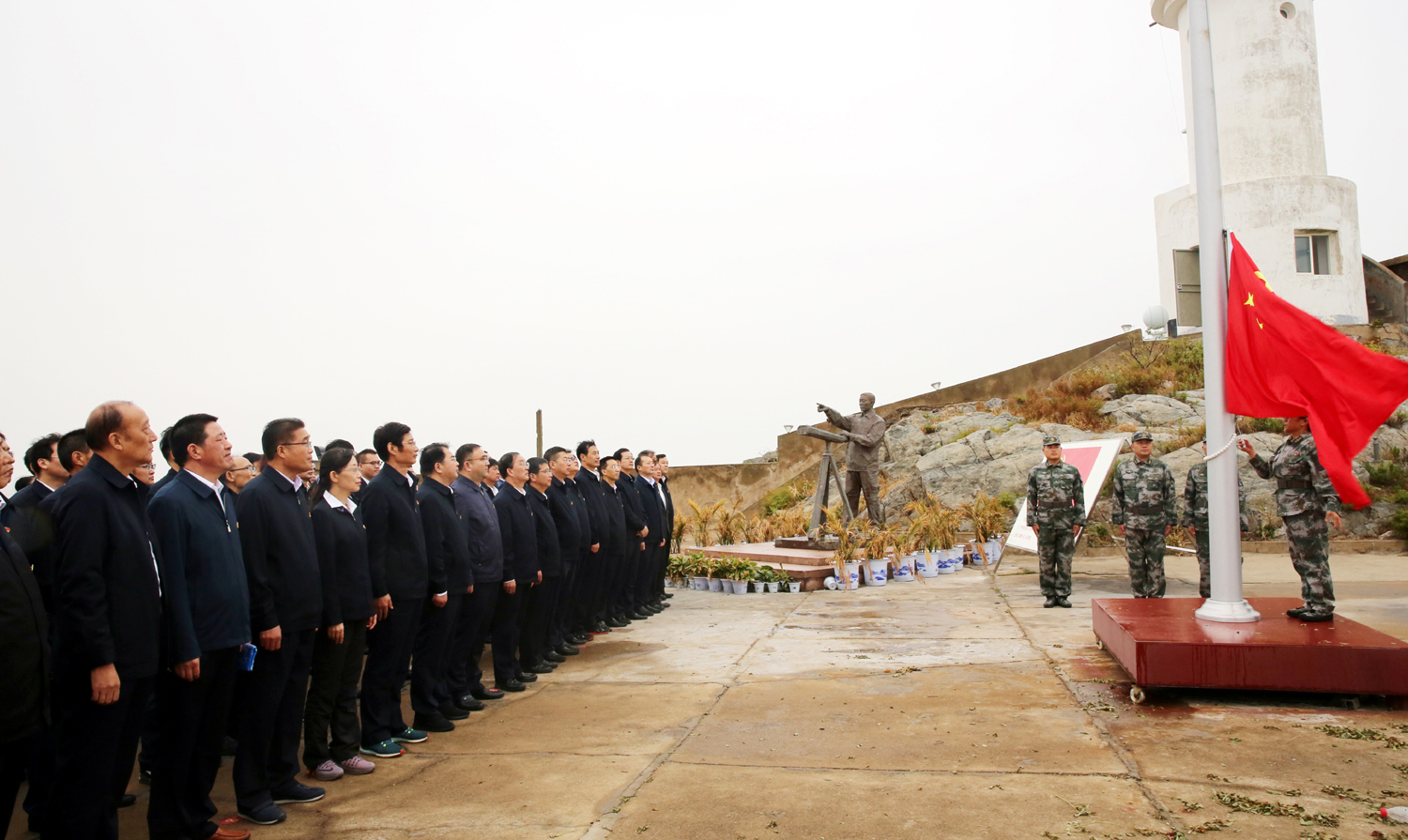 为进一步践行“不忘初心、牢记使命”主题教育,追寻“人民楷模”王继才、王仕花夫妇的守岛精神,10月10日,华体会(中国)公司党委书记、董事长杨龙,总经理胡建明等党委领导班子成员与机关部分党员、各单位党内先进代表等共100人,冒雨赴江苏省干部党性教育基地——开山岛,开展“学习人民楷模王继才、践行初心使命勇担当”党性教育活动。 在面积只有两个足球场大的开山岛上,全体党员参观了王继才同志生前工作生活过的场所,看望慰问王仕花和守岛民兵,举行庄严的升国旗和重温入党誓词仪式。在王继才先进事迹展览室,一件件实物和一幅幅图片,从不同角度、不同侧面生动的再现了王继才“岛就是家、岛就是国”,扎根海岛、献身海防的先进事迹和奉献精神。活动期间,大家还观看了纪录片《守岛32年》,认真聆听了王仕花讲授的关于守岛卫国32年,用无怨无悔的坚守和付出,在平凡的岗位上书写了不平凡人生华章的微党课。