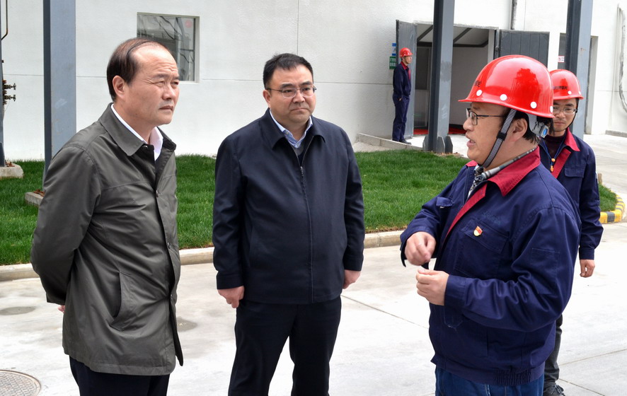 4月25日下午,市委常委、开发区党工委书记尹哲强一行到氨纶公司调研指导工作。华体会(中国)公司董事长、党委书记杨龙陪同调研。