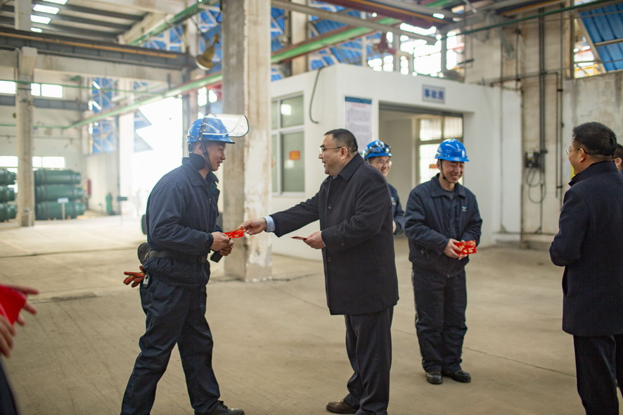 2月5日,华体会(中国)公司董事长、党委书记杨龙,党委副书记戴鸿鸣等领导轻车简从,深入氯碱公司、氨纶公司、华茂公司、供电公司等基层单位,向春节期间坚守在生产一线的广大员工致以节日的问候和祝福,并送去慰问品。 (综合宣)