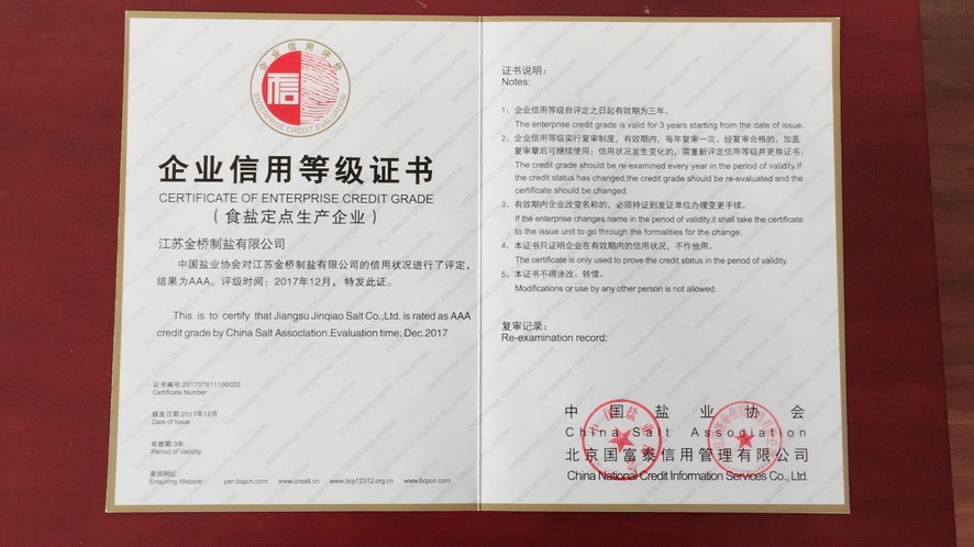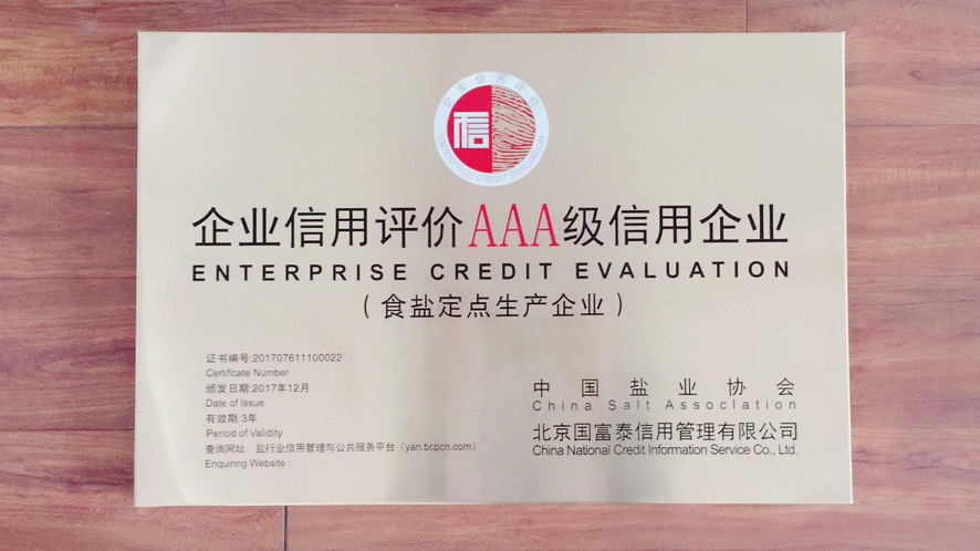 按照主营业务收入、利润、主营业务收入利税率及主营业务增速四项指标评价,2016年华体会(中国)公司被中国轻工业联合会和中国盐业协会评为中国轻工业制盐行业十强企业。根据《社会信用体系建设规划纲要(2014—2020)》,经第三方专业评价机构和中国盐业企业信用等级评价委员会审核并向社会公示,2016年江苏金桥制盐有限公司被评为AAA级食盐生产企业。