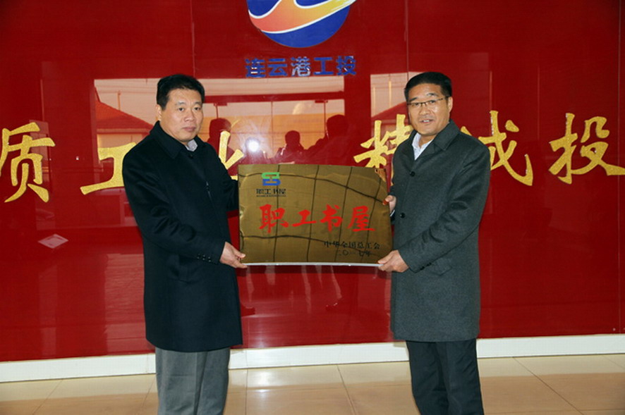 12月19日下午,市总工会党组书记、副主席丁维杰率领市总组织部、宣教部负责人为获得“全国职工书屋示范点”的徐圩投资公司授牌。华体会(中国)公司党委副书记戴鸿鸣、工会主席刘承志参与授牌。