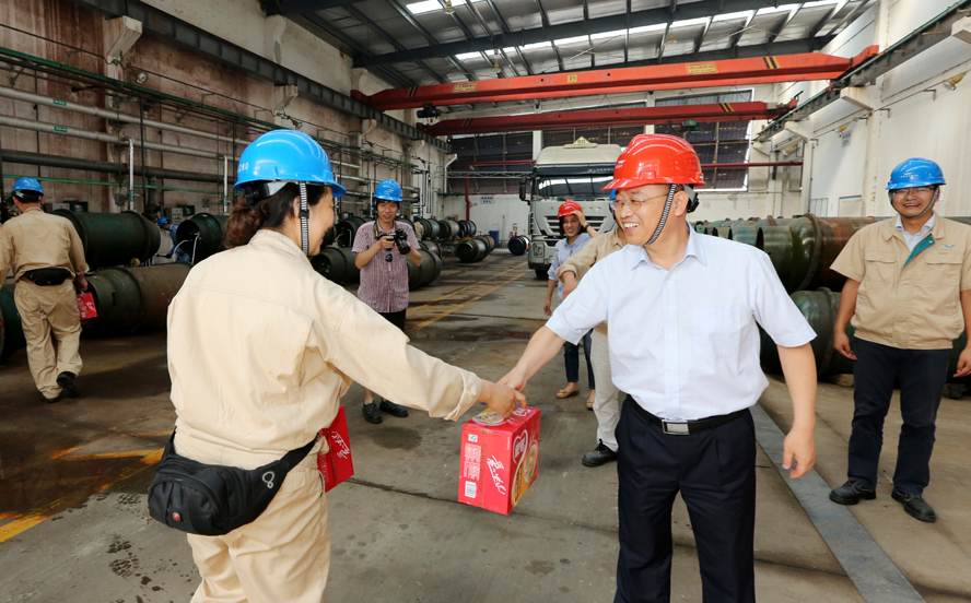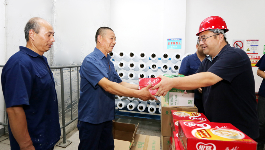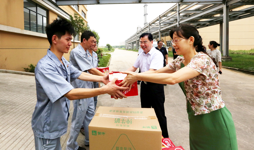 炎炎夏日送清凉,点滴关爱暖人心。连日来,骄阳似火,酷暑难耐。7月18-20日,华体会(中国)公司领导杨龙、胡建明、张其海、朱天松、戴鸿鸣、汪群、匡友本等轻车简从,分赴基层一线,进车间、入工地、到滩(田)头,慰问在高温下坚守岗位的广大员工,送去绿豆、白糖等防暑降温品,在炎炎夏日中将“清凉”送到职工心坎上。