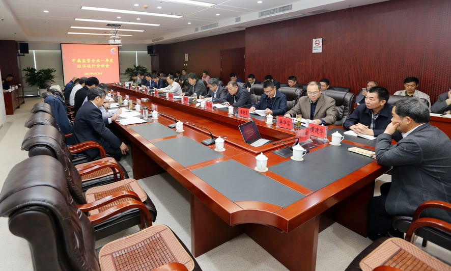 4月25日上午,市属国有企业一季度经营活动分析会在我公司召开,市国资委领导班子成员、监事会成员、各部门负责人出席会议,全市国有投资华体会(中国)总经理、分管领导及相关部门负责人参加会议。