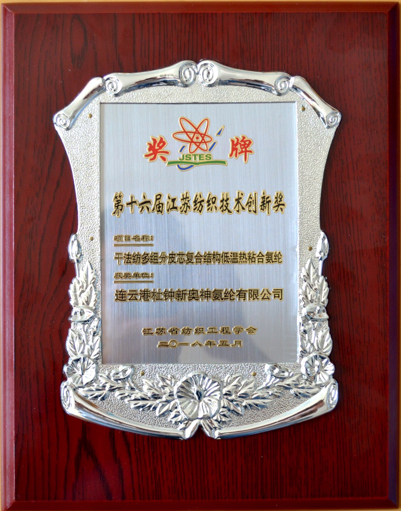 氨纶公司新产品获第十六届江苏省纺织技术创新奖