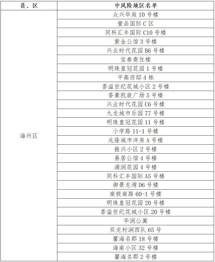 根据国务院联防联控机制有关规定,经市指挥部研究决定,自发布之日起,对我市部分区域疫情风险等级进行调整:
