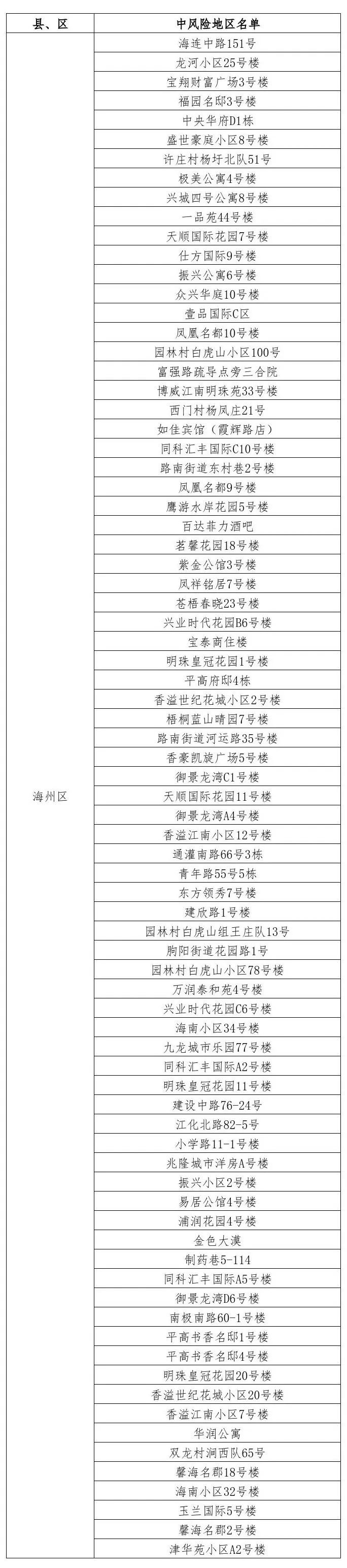根据国务院联防联控机制有关规定,经市指挥部研究决定,自发布之日起,对我市部分区域疫情风险等级进行调整: