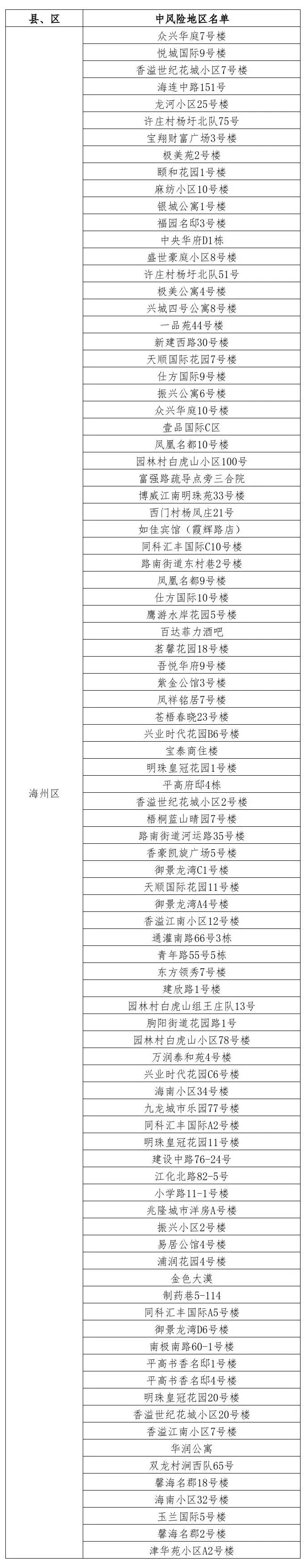 据国务院联防联控机制有关规定,经市指挥部研究决定,自发布之日起,对我市部分区域疫情风险等级进行调整: