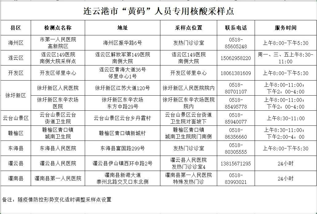近日,我市发现新冠肺炎确诊病例及无症状感染者。根据疫情精准防控工作要求,为及时有效阻断新冠肺炎疫情传播,现将我市“苏康码”赋“黄码”和转码管理相关事项通告如下: 一、赋“黄码”对象与确诊病例或无症状感染者活动轨迹有时空伴随人员。二、“黄码”转“绿码”方式1. 赋“黄码”人员,应居家健康监测7天,并到指定机构进行3次核酸检测(第1、3、7天,每次间隔24小时),如果检测结果均为阴性,统一转为“绿码”。符合转码条件未能自动转码的“黄码”人员,凭相关证明向所在地社区(村)、街道(乡镇)登记,并提出申请,由属地县(区)疾控中心安排专人负责审核,并负责转“绿码”事宜。2. 如市民发现“黄码”赋码不准确,可及时向所在社区(村)报告、登记,由社区(村)汇总至所在街道(乡镇)后提供给属地县(区)疾控中心进行审核,并负责转“绿码”事宜。三、其它注意事项“黄码”人员请主动向所在社区(村)登记,遵守相关防疫规定,到指定“黄码”专用采样点进行核酸采样检测。全程严格做好个人防护,不乘坐公共交通工具,与他人保持1米安全距离。请市民密切关注个人健康状况,做到少出门、不串门、不扎堆、不聚集,出现发热、咳嗽、乏力、腹泻等新冠肺炎疑似症状第一时间报告。凡应检未检造成疫情传播的,依法追究责任。附件:连云港市“黄码”人员专用核酸采样点 连云港市突发新冠肺炎疫情应急处置指挥部办公室2022年3月6日 近日,我市发现新冠肺炎确诊病例及无症状感染者。根据疫情精准防控工作要求,为及时有效阻断新冠肺炎疫情传播,现将我市“苏康码”赋“黄码”和转码管理相关事项通告如下: 一、赋“黄码”对象 与确诊病例或无症状感染者活动轨迹有时空伴随人员。 二、“黄码”转“绿码”方式 1. 赋“黄码”人员,应居家健康监测7天,并到指定机构进行3次核酸检测(第 1、3、7天,每次间隔24小时),如果检测结果均为阴性,统一转为“绿码”。符合转码条件未能自动转码的“黄码”人员,凭相关证明向所在地社区(村)、街道(乡镇)登记,并提出申请,由属地县(区)疾控中心安排专人负责审核,并负责转“绿码”事宜。 2. 如市民发现“黄码”赋码不准确,可及时向所在社区(村)报告、登记,由社区(村)汇总至所在街道(乡镇)后提供给属地县(区)疾控中心进行审核,并负责转“绿码”事宜。 三、其它注意事项 “黄码”人员请主动向所在社区(村)登记,遵守相关防疫规定,到指定“黄码”专用采样点进行核酸采样检测。全程严格做好个人防护,不乘坐公共交通工具,与他人保持1米安全距离。请市民密切关注个人健康状况,做到少出门、不串门、不扎堆、不聚集,出现发热、咳嗽、乏力、腹泻等新冠肺炎疑似症状第一时间报告。凡应检未检造成疫情传播的,依法追究责任。 附件:连云港市“黄码”人员专用核酸采样点 连云港市突发新冠肺炎疫情应急处置指挥部办公室 2022年3月6日
