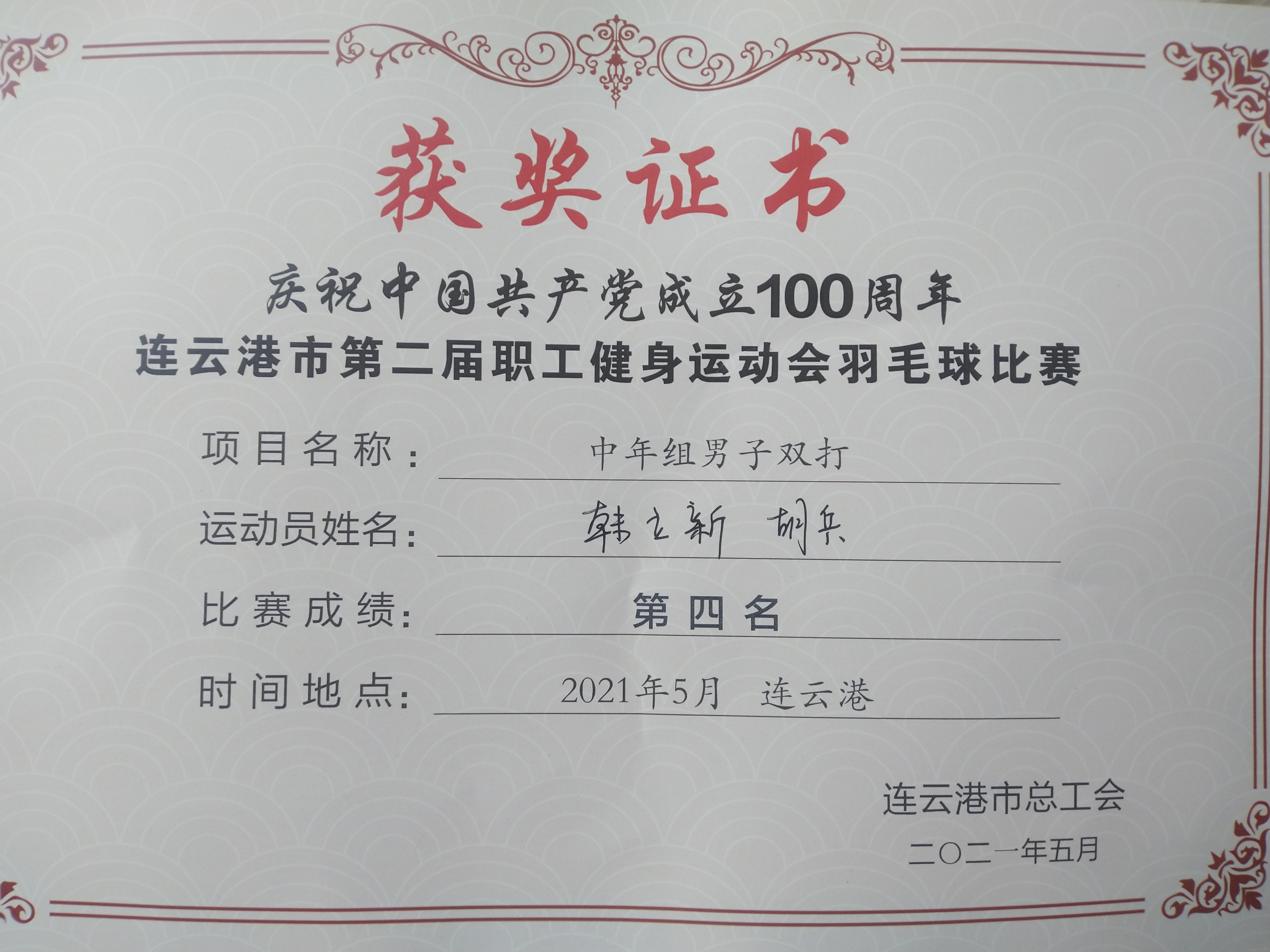 5月28-29日,市第二届职工健身运动会羽毛球比赛在振兴李宁羽毛球馆举办,来自全市34支代表队,293名选手参赛。经过激烈角逐,韩立新、胡兵在中年男子双打比赛中取得了第四名的好成绩。