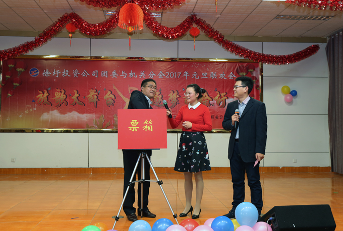 徐圩投资公司领导班子成员应邀参加联欢会,并积极参与到联欢会的互动游戏及现场抽奖活动中,促进干群关系的和谐发展。