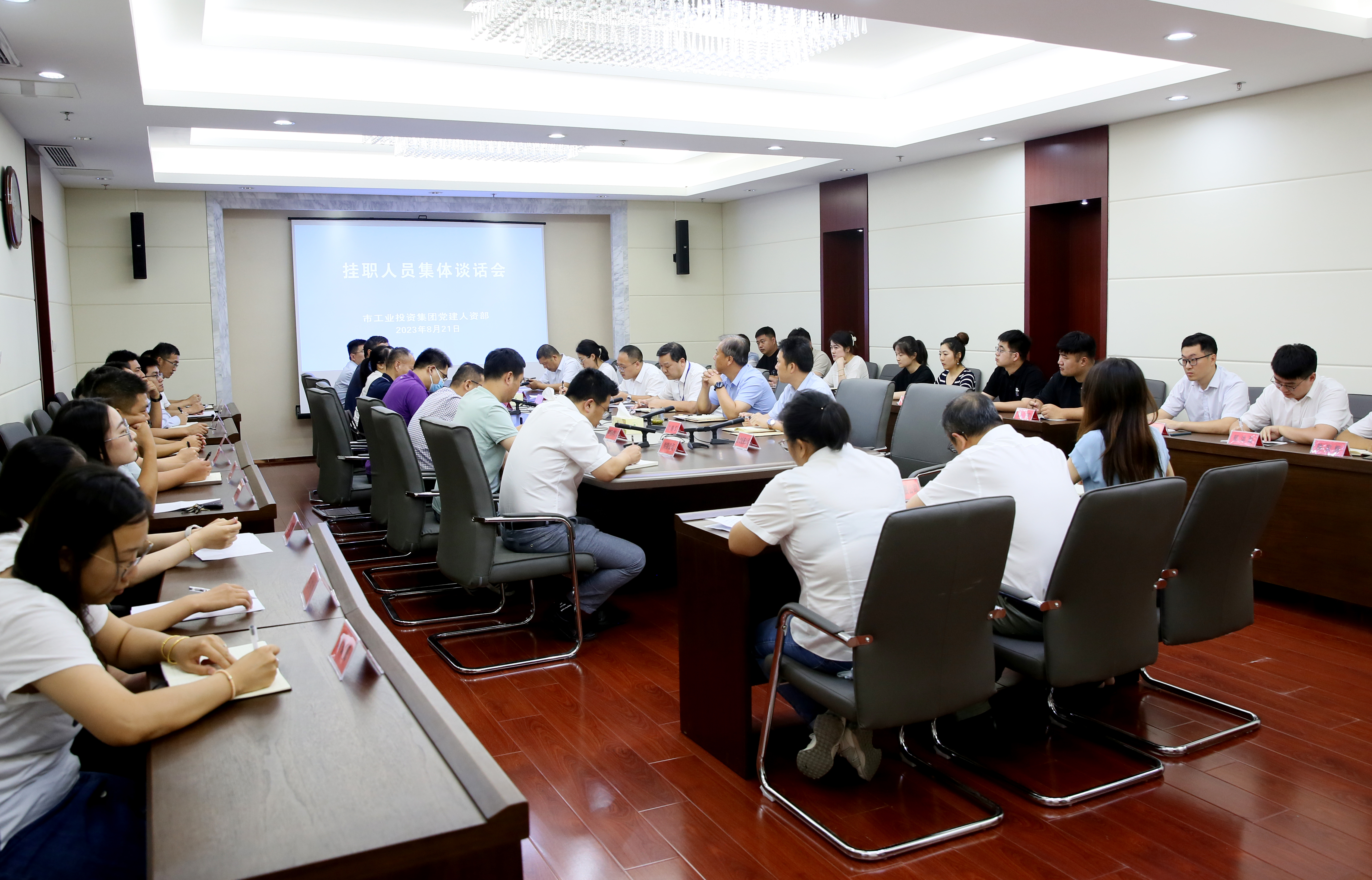 8月21日,华体会(中国)公司召开挂职人员集体谈话会。华体会(中国)公司党建人资部相关同志、22名挂职人员参加会议。