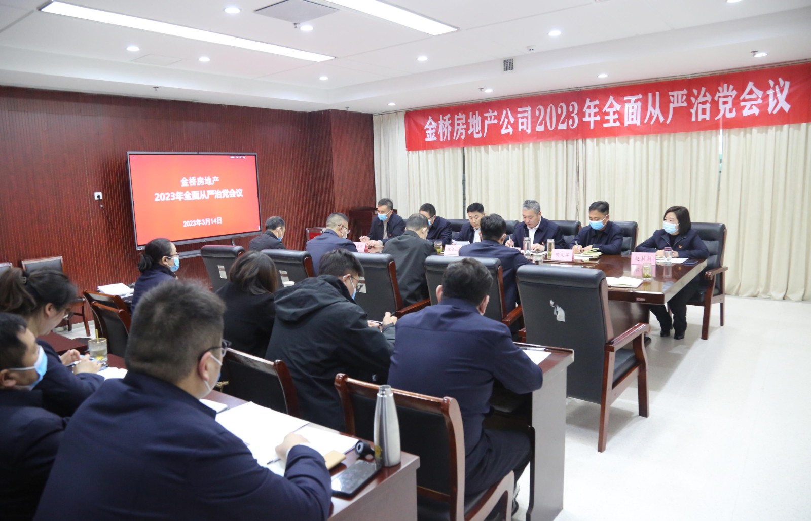 3月14日,公司党总支召开2023年全面从严治党工作会议,认真回顾2022年全面从严治党工作,研究部署2023年重点任务,动员公司两级党组织和广大党员解放思想强引领、提质增效创佳绩,为产业地产高质量发展实现攻坚突破目标提供坚强的政治保证。