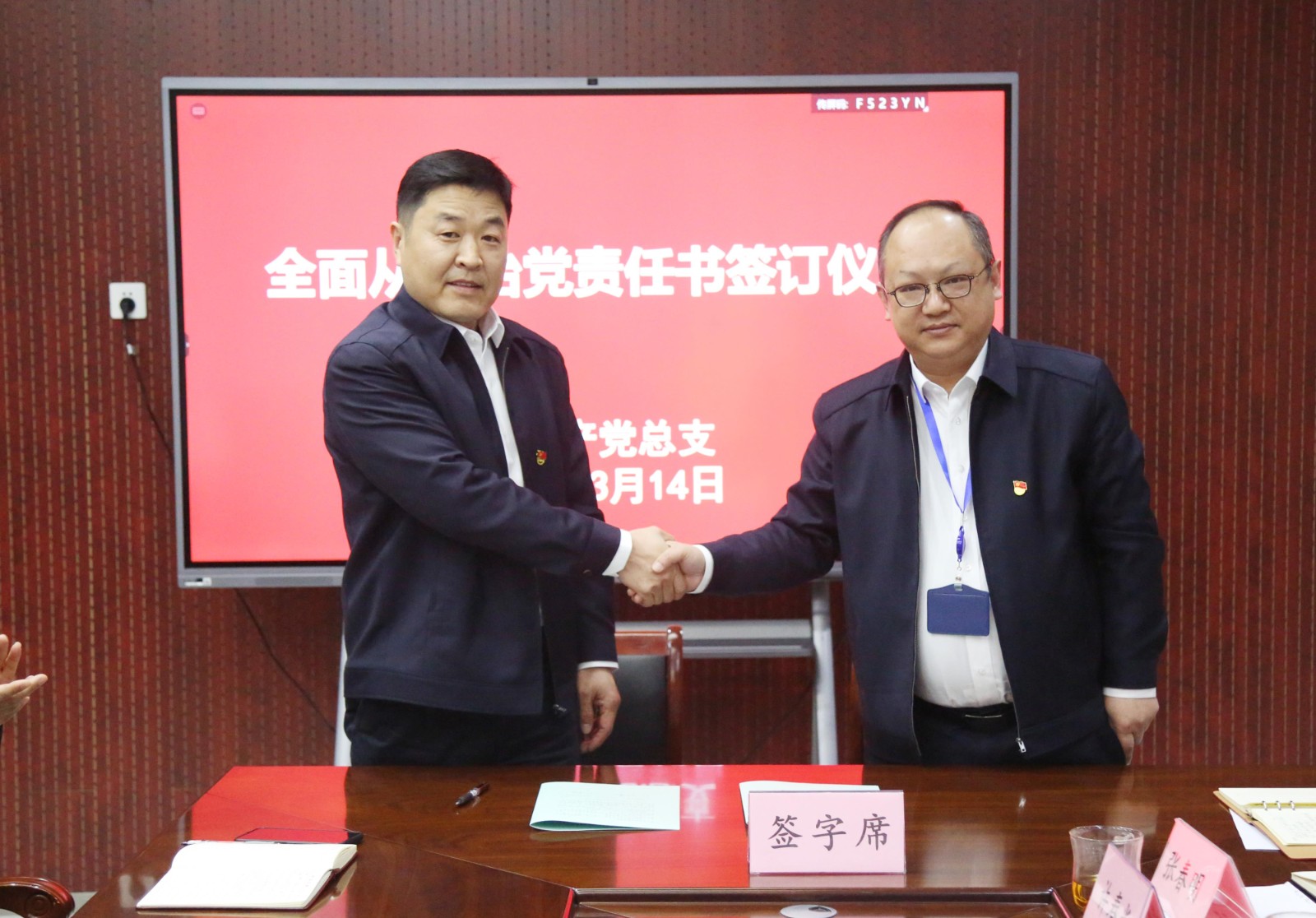 会上,与会人员观看了廉政警示教育片,各党支部签订了《全面从严治党责任书》。