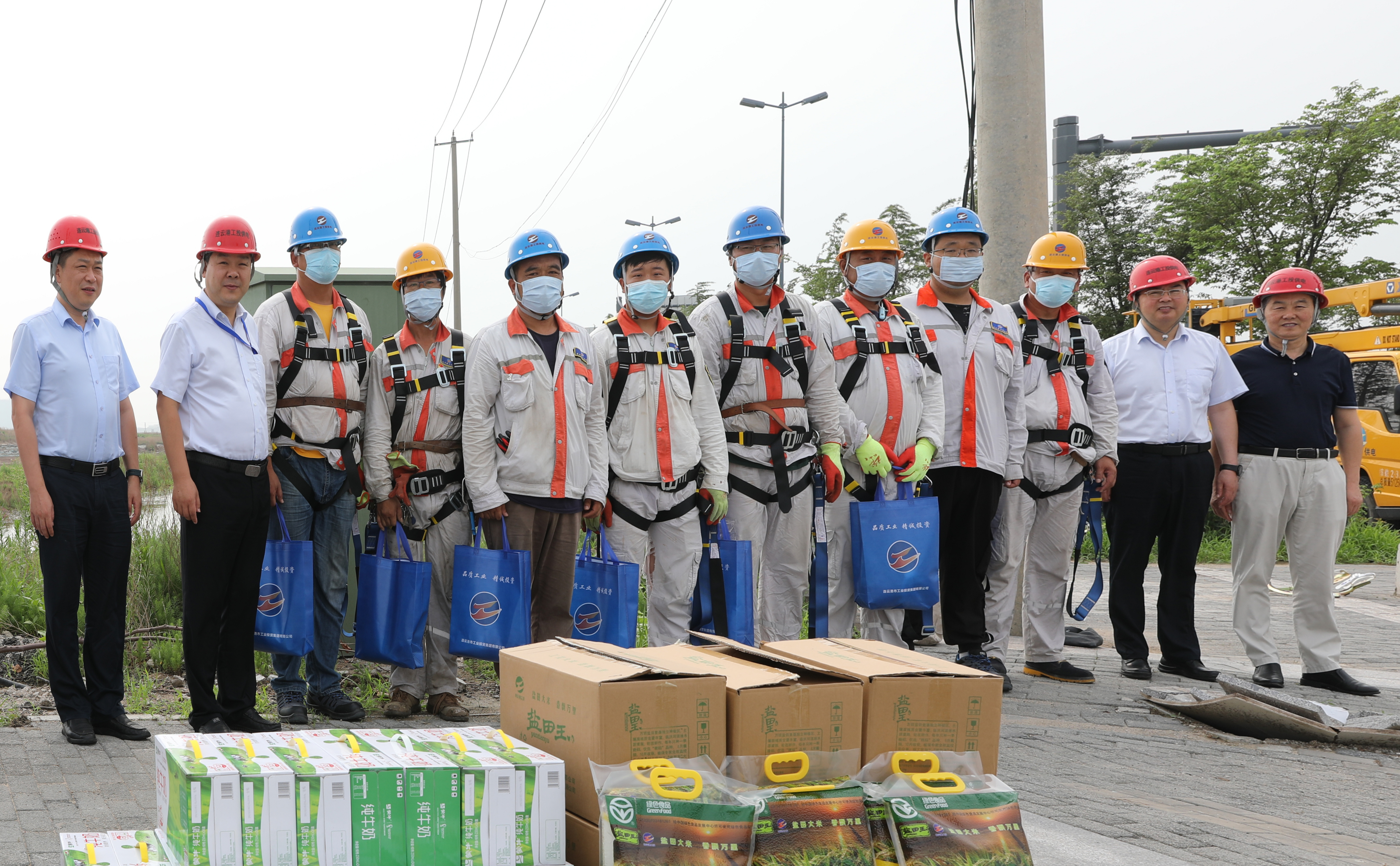 在台北供电所工地现场,华体会(中国)公司党委副书记、工会主席戴鸿鸣对烈日下工作的职工给予了高度赞扬,并将慰问品送到职工的手中,将关爱送到大家的心坎上,并叮嘱大家在做好疫情防控工作的同时做好防暑降温工作,合理安排休息,注意劳逸结合,确保各项工作的正常运行。