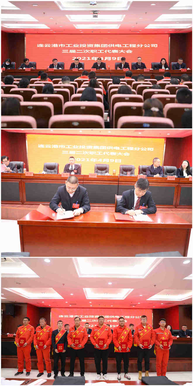 会上,还审议通过了有关报告,方案,表彰了先进,签订了《2021年集体合同》和《2021年目标责任认标书》,工程营销部、台北供电所和徐南供电所分别作了表态发言。(电宣)