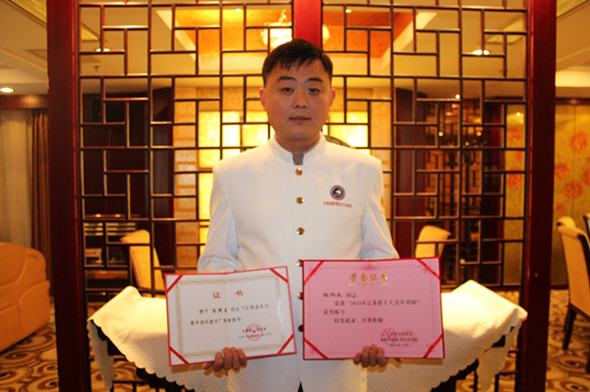 由共青团江苏省委员会、江苏省烹饪协会联合举办的2015年度“江苏省十大青年名厨”评选活动的结果,日前在苏州开幕的江苏省第二届厨师节上揭晓,淮盐大酒店厨师长陈明生被评为“江苏省十大青年名厨”,他还同时被共青团江苏省授予“江苏省青年岗位能手”称号。此次活动参评选手须是江苏省烹饪大师或江苏省烹饪名师以上,具有技师或高级技师技术职称,且年龄在35周岁以下的青年厨师。由专家评审团根据选手参加赛事获奖情况及为全省或地方等方面进行综合评估,最终评出江苏省十大青年名厨。(陈明生)