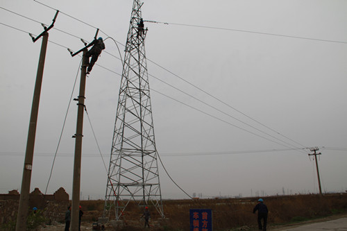 4月15日下午,随着35KV东管线改造的第一根导线顺利装设,标志着我公司输配电施工水平又迈上了一个新的台阶。 35KV东管线改造工程是我公司为解决徐南公司生产经营和居民生活用电紧张而实施的一项便民工程,技术要求高,施工难度大。为此,公司领导高度重视,从各供电所挑选精兵强将,组织了40余人的施工队伍,公司副书记、副经理卢明生、副经理袁庆国亲临现场,指导施工。经过全体干群努力奋战,首次成功架设了35KV线路2.1公里,近30米高的角钢电力铁塔。(政工 朱兵)