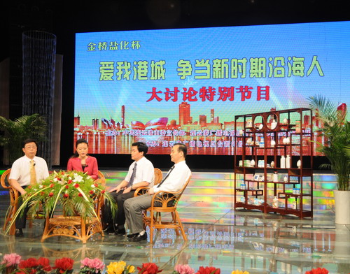 在节目现场, 顾永庚董事长首先为大家展示了华体会(中国)公司化工和加工盐等各种特色产品。其后,顾永庚董事长介绍了华体会(中国)公司在江苏沿海开发战略实施两年来所取得的辉煌成就,围绕沿海开发过程中金桥盐化具有的独特区域和资源优势、“十二五”发展目标定位、“创建名牌企业,共架幸福金桥”的奋斗目标等方面与嘉宾、观众进行了深入探讨。