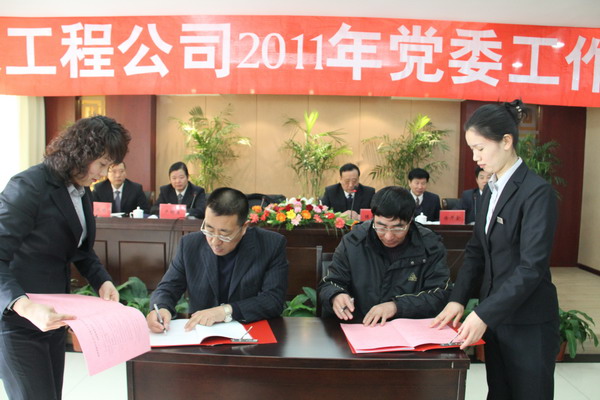 3月24日上午,公司党委工作会议在淮盐大酒店隆重召开。公司党委书记、总经理范益宝作了党委工作报告,党委副书记、纪委书记卢明生作了纪检监察工作报告。会议由公司党委副书记、副总经理陈雨华主持。会上,党委委员王志军传达了华体会(中国)公司2011年党建工作会议精神。党委书记与各支部书记签订了2011年党建工作目标责任书和计划生育目标责任书。