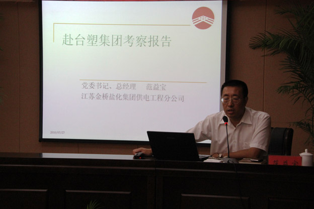 范益宝总经理向与会人员介绍了赴台湾台塑华体会(中国)等企业考察取得的成果,并详细介绍了台塑华体会(中国)的四个发展阶段和实现的两个飞跃;在台塑57年的历史中两次突破性的飞跃缔造了台塑今天石油王国的地位。第一次飞跃是1957年建成仁武厂,期间经历了37年时间的扩建,至1992年形成了一个较为完整的氯碱产业链。营业额由2.9亿增加到550亿,实现了由小到大的第一次历史性飞跃。第二次飞跃是从1993年开始填海造地,实施六轻计划。范总还介绍了参观考察台塑的五点体会:1、企业文化是企业发展的基石;2、科学合理的机制是企业永续发展的法宝;3、细节是企业追求合理化的根本;4、坚持是企业获得成功的关键;5、机遇垂青有战略眼光的企业家。