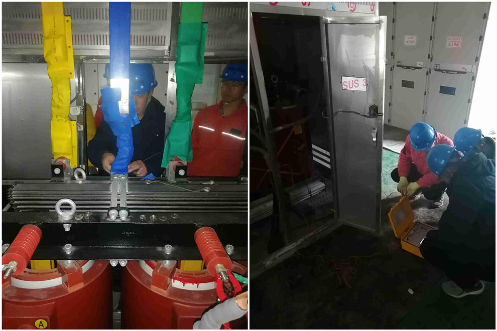 317 工程营销部试验班组对酒吧街配电工程进行耐压试验,确保配电工程安全进行。