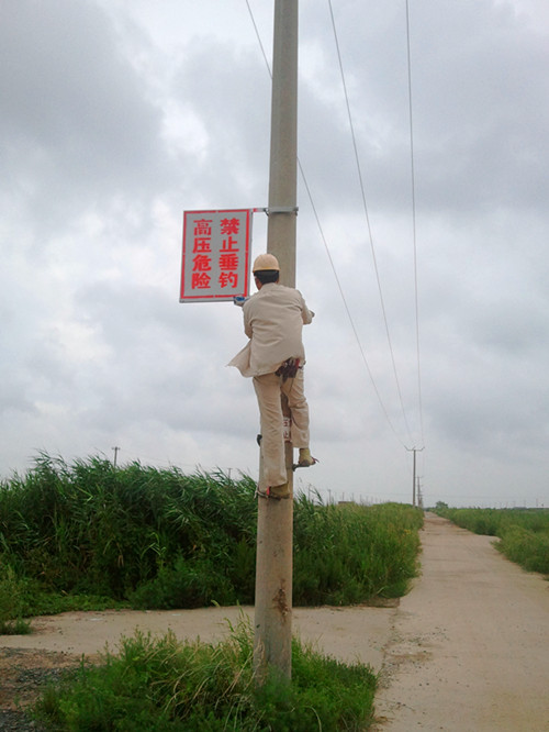 为了认真落实供电公司安全工作例会精神,针对即将到来的钓鱼季节,徐圩供电所加强对辖区内养殖池塘高低压线路安全警示牌和对地安全距离的监督检查,并向广大养殖户宣传在高低压线路下钓鱼的危害性,使大家认识到珍爱生命、关注安全、保障人身平安幸福的重要性。该供电所还在养殖池塘比较集中区域进出主要路口,安装自制“高压危险、禁止垂钓”安全警示牌10余块,有力地警示了广大居民,增强了安全防范意识。(钱彩弟)