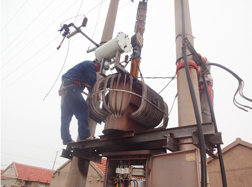 连日来,天气持续高温,用电负荷也随之加大,辖区原有设计的供电线路及变压器容量已不能满足居民生活用电的需求,供用电矛盾日益突出。特别是4号变压器供电区域大、容量小,已严重危急到供电质量和供电安全运行。为此,所领导决定将原有的160KVA变压器更换为250KVA变压器。为了避开高温时断,大家起早作业,但还是忙的汗流浃背。他们顾不上休息,加快设备更换速度,终于在上午八点前完成更换任务,恢复供电。(王志勇)
