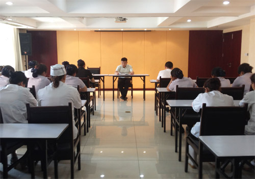 在培训中,陈总监结合诸多事故案例,强调了预防食物中毒的重要性,让参加培训的员工了解什么是食物中毒、容易引起食物中毒的食材主要有哪些、怎样识别和防止食材霉腐变质。餐饮部经理郭天丽重点讲解了食物中毒的几种特征及一般急救方法。