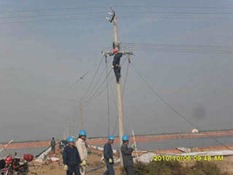 国庆期间,灌西供电所全体职工坚守岗位,工作在中国华能风力发电接电线路、华体会(中国)公司矿卤二期工程作业施工现场。(图为工人正在架设线路)(杨守全)