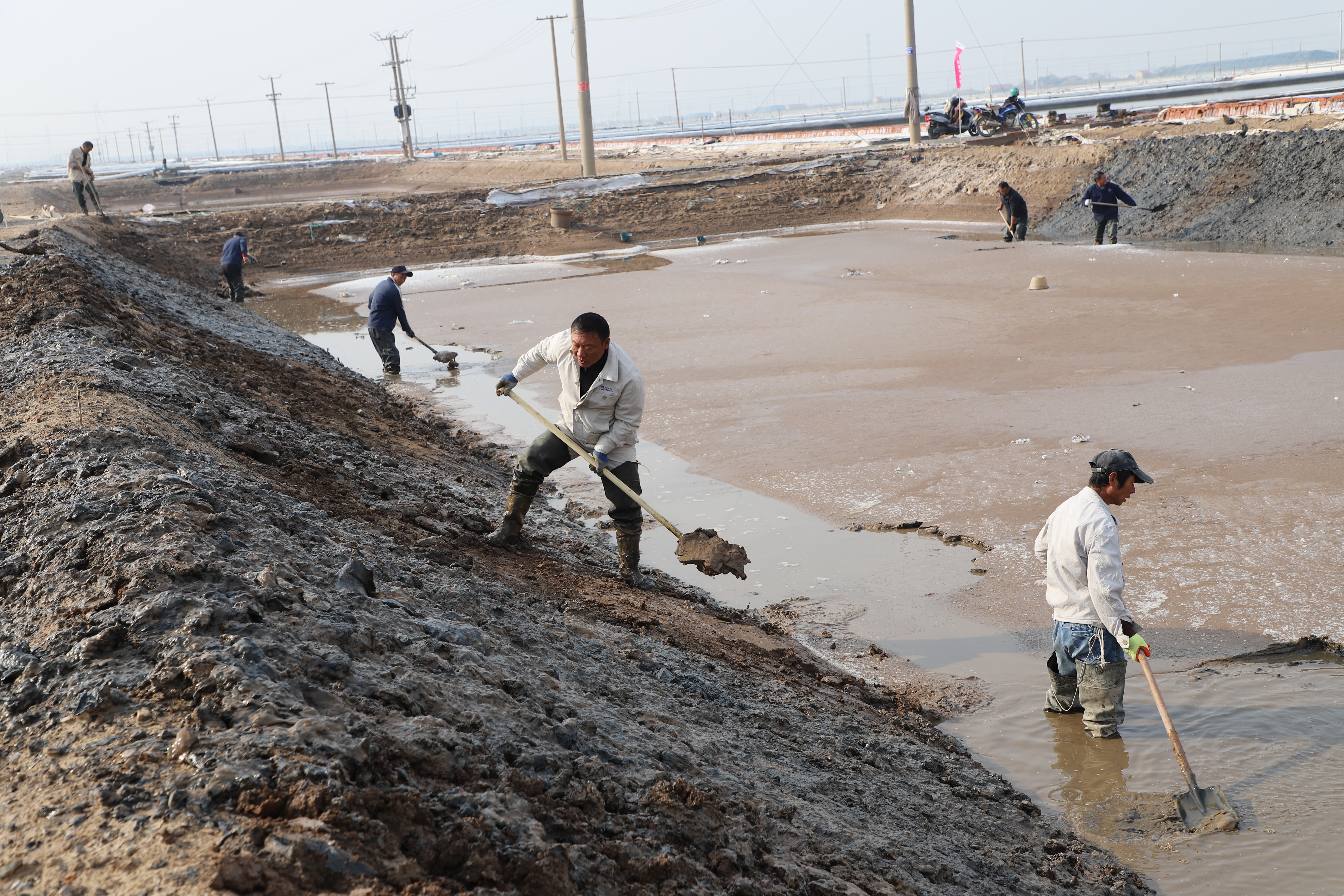 寒冬时节,暖阳之下,盐廪之旁,晒得黝黑的盐场产业工人们按照竞赛的考核标准,做熟泥、打堰墙、做堰顶,护埝顶、夯埝坡、清塘底,见证了一场技能比拼的盛会。经过一天的鏖战,卢正兵、靳新邦、匡洪忠师徒取得了池堰修整的前三名;林树军、潘成军、胡继华师徒取得了土塘清淤的前三名。(西工)