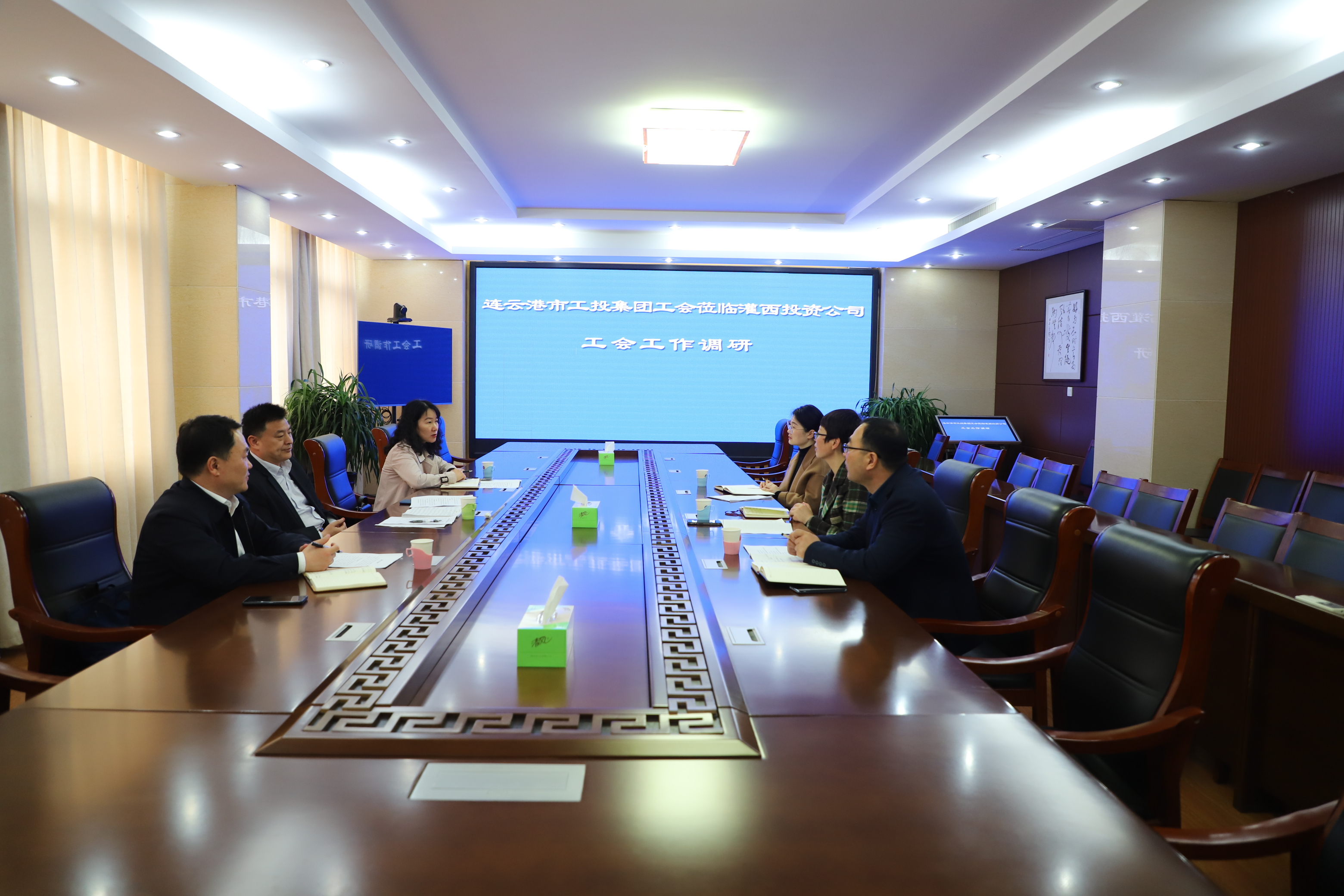 4月20日上午,华体会(中国)公司工会副主席陆向东一行到灌西工会调研指导工作。投资公司党委副书记、工会主席王宏,工会相关人员陪同调研。