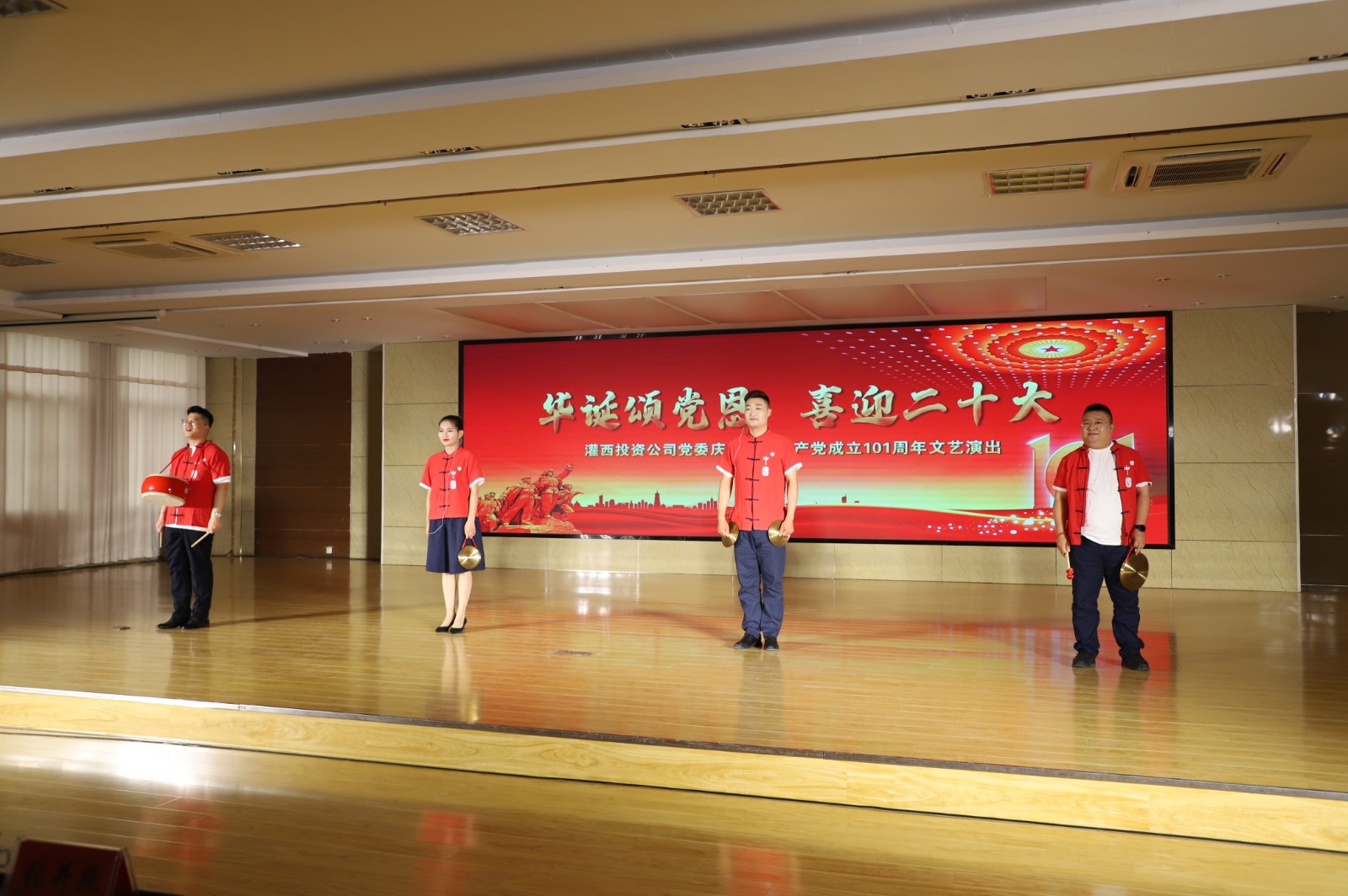 在中国共产党成立101周年华诞到来之际,6月30日,灌西投资公司党委举办“华诞颂党恩喜迎二十大”主题文艺演出,以职工群众喜闻乐见的演出形式给大家带来一场精彩纷呈的视听盛宴。