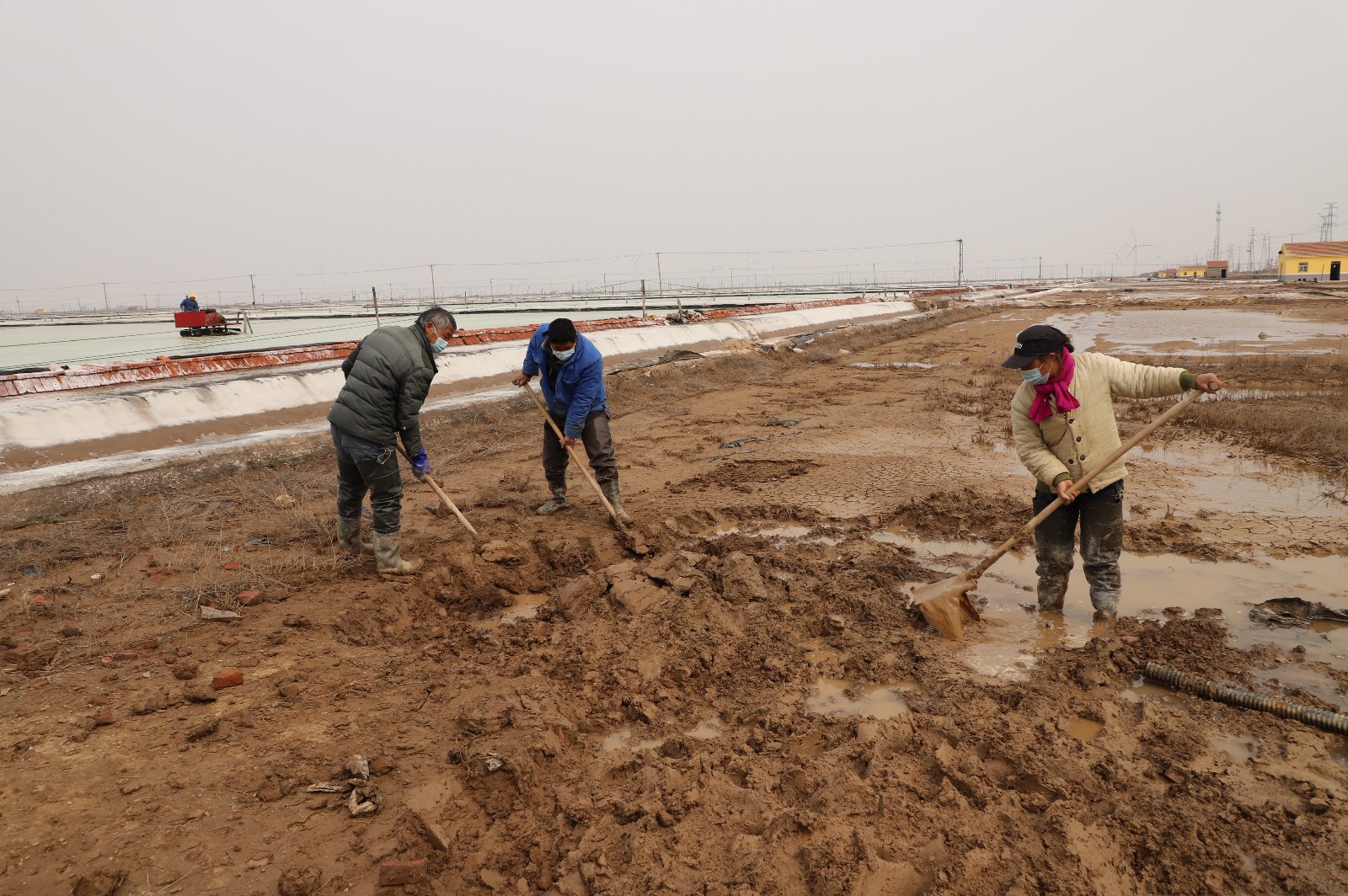 3月28日清晨,在通往日晒制盐新河、埒南分公司入口处,戴着口罩的工人们依次接受测温、亮码、登记,有序进入各生产班组。滩头上,工人们分散作业,忙着修补塑造、整理廪基……无论是从滩头到塘头,还是从码头到田头,处处都呈现出热火朝天、大干快上的场景。