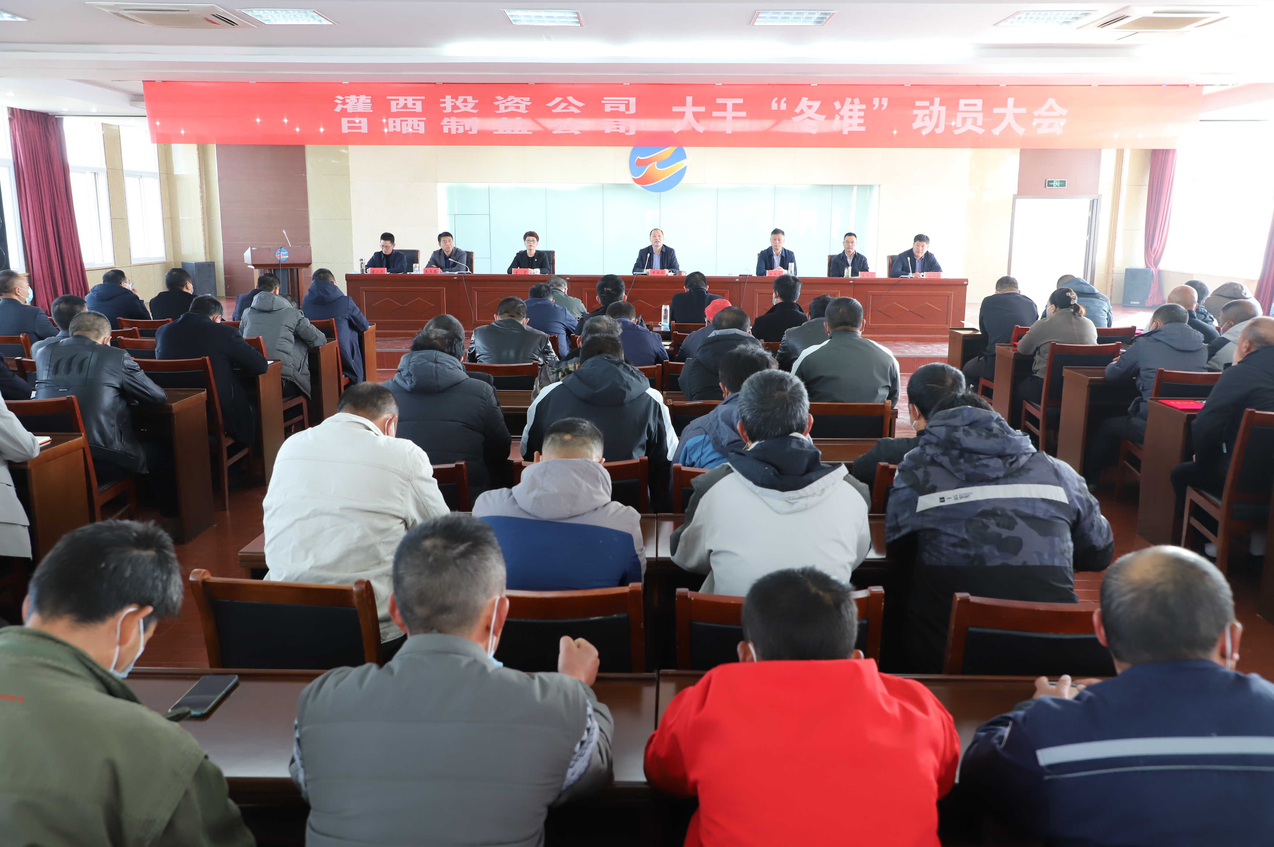 11月19日,灌西投资公司、日晒制盐公司在机关五楼召开大干“冬准”动员大会,全面部署冬准工作,切实做好今冬明春的各项工作,投资公司班子成员,各单位党政负责人、机关副职级以上管理人员、全体班组长及受表彰人员参加会议。