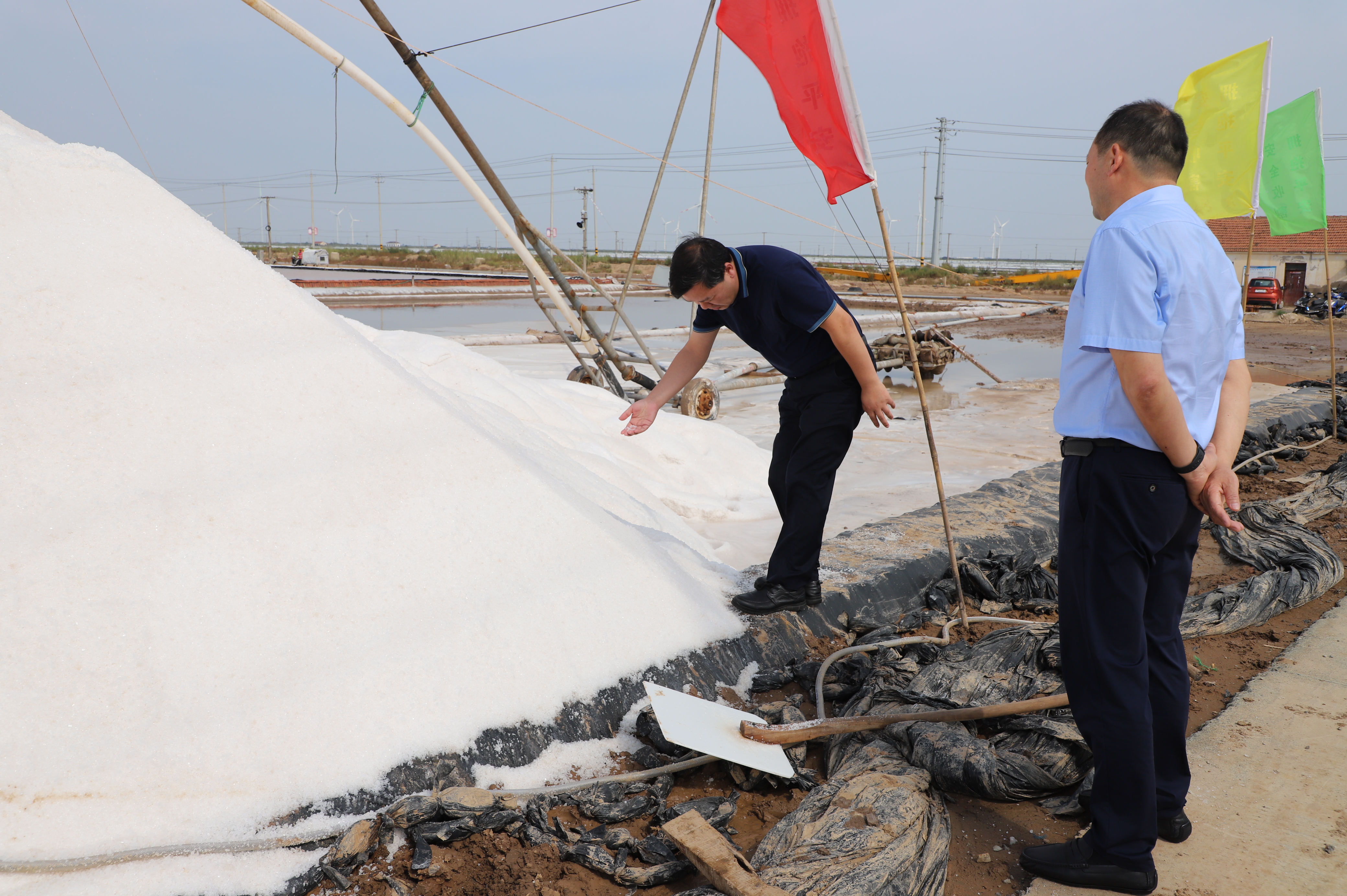 调研组一行先到新河十三班参观现场扒盐,李国文董事长向调研组一行介绍了目前日晒制盐公司采用的带卤扒盐技术,并就目前盐业生产、运输、销售等情况进行了简单的介绍。
