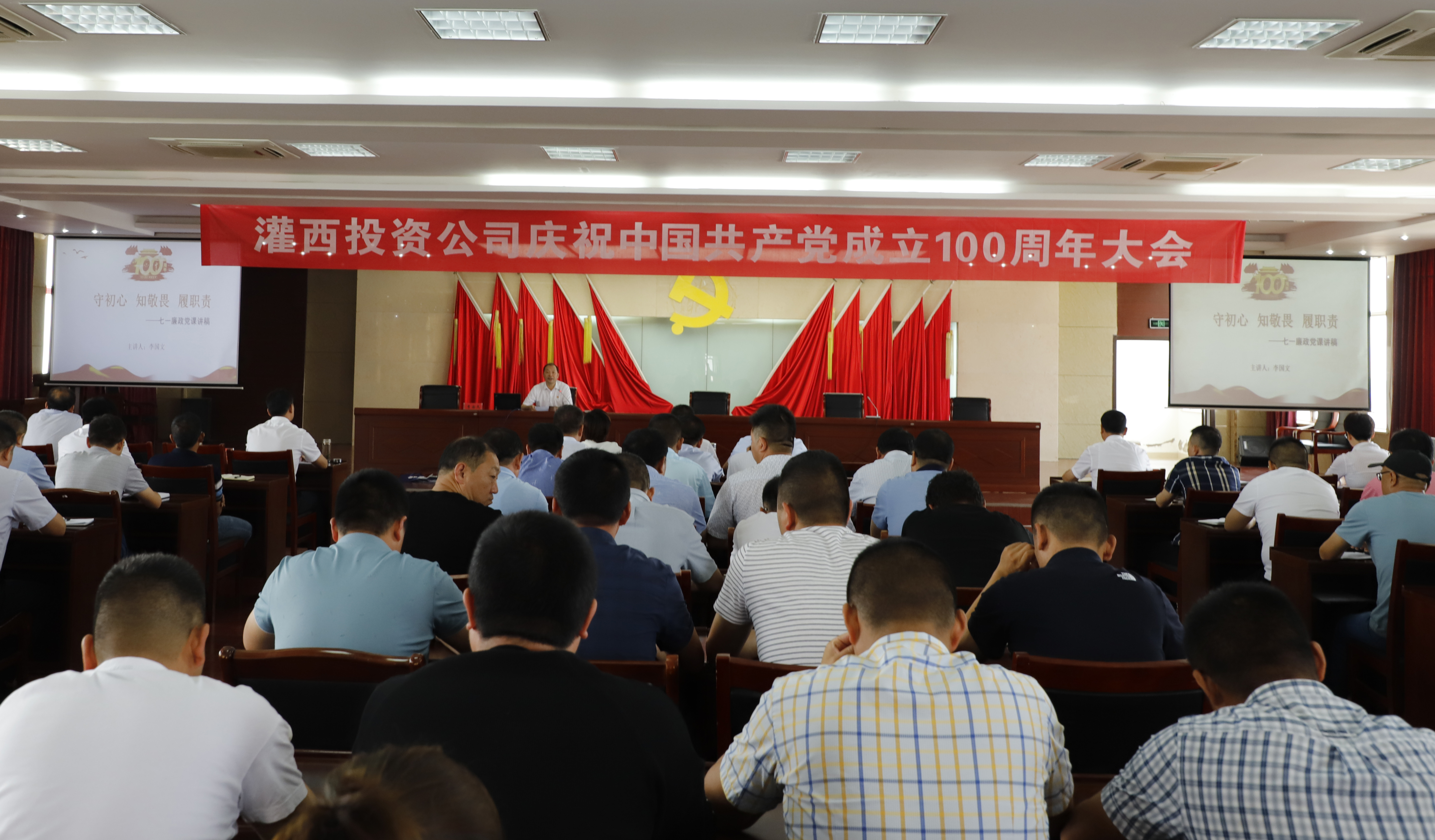 为缅怀党的光荣历史,讴歌党的丰功伟绩,表达对党的深情厚谊,进一步增强“四个意识”,坚定“四个自信”,做到“两个维护”。6月30日上午,灌西投资公司召开庆祝中国共产党成立100周年大会,公司领导班子成员、各单位党政负责人、机关全体党员参加,大会由公司党委副书记、工会主席王宏主持。
