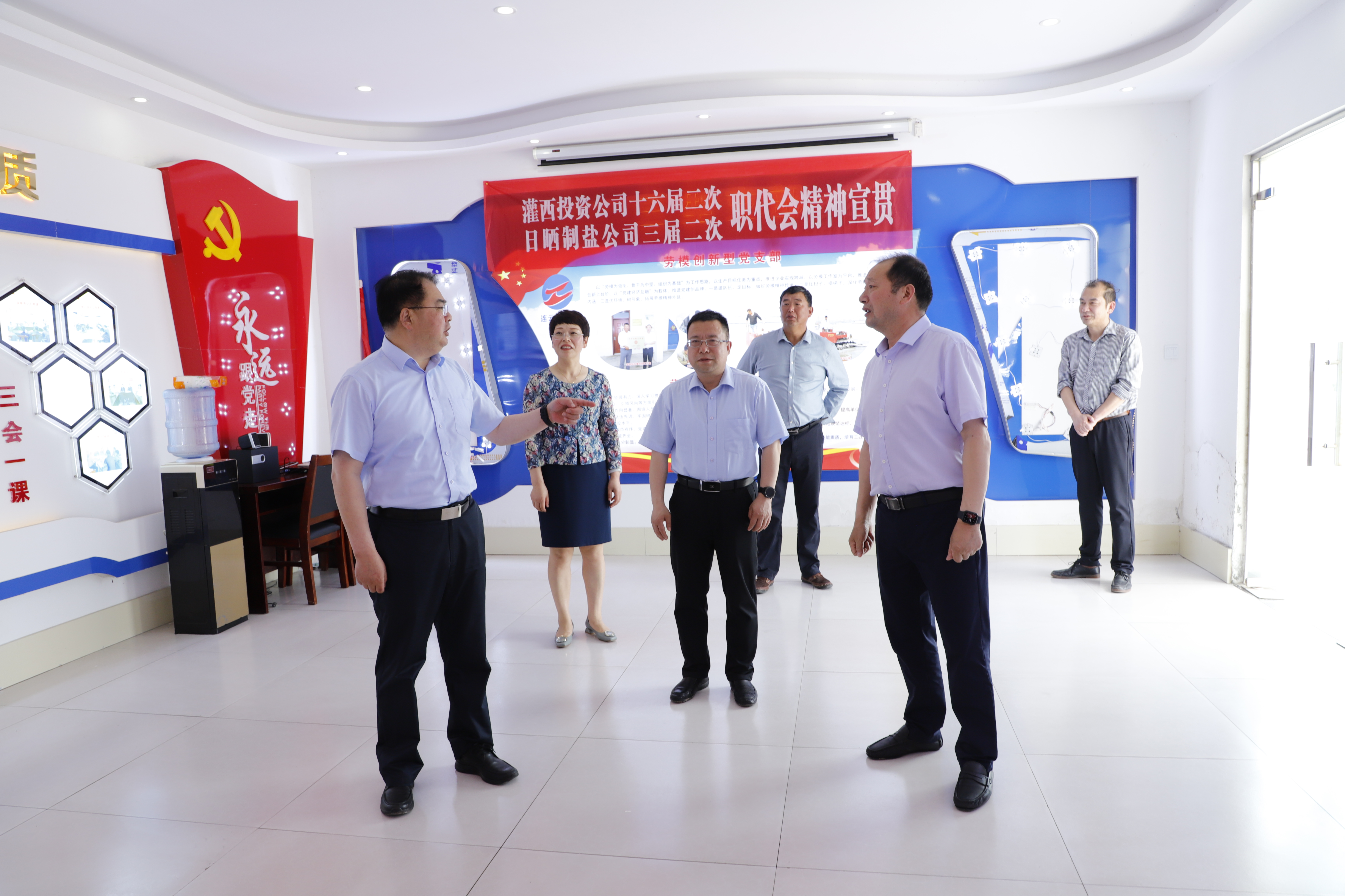 戴鸿鸣书记一行分别到日晒制盐新河分公司八班的扒盐现场、零班的班组活动室、新河分公司党建活动室和安树林劳模创新工作室实地调研,对党建阵地建设提出指导意见,他指出,基层一线的阵地建设是企业文化建设的重要组成部分,是公司的形象窗口,阵地建设要因地制宜,打造特色,要进一步完善设计方案,尽快把活动室高标准高质量建起来。