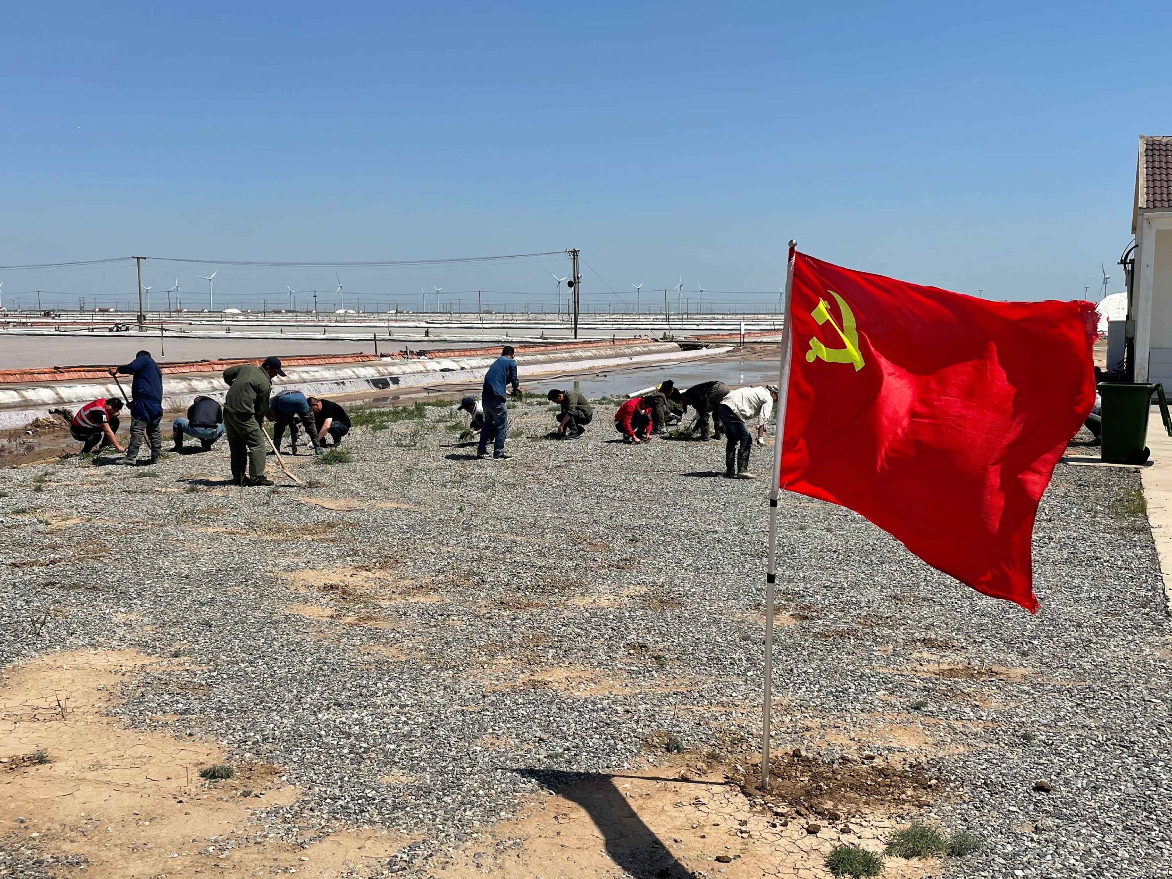 服务经济发展,争做创业先锋。公司党委在每个党支部分别成立一个党员志愿服务队,广泛开展志愿服务活动。以“党员争当服务先锋”为主题,开展“志愿服务到一线,志愿服务进基层”系列活动,吸引了大批党员志愿者深入滩头、塘头、码头、田头等生产一线开展服务活动。原盐生产一线各党支部组织党员志愿者开展集中清除杂草、修整生产路等系列志愿服务活动;结合劳模工作室、党员示范岗、党员样板滩等平台,开展小改小革、技术创新活动和技术创新成果推广应用方面发挥了表率作用。