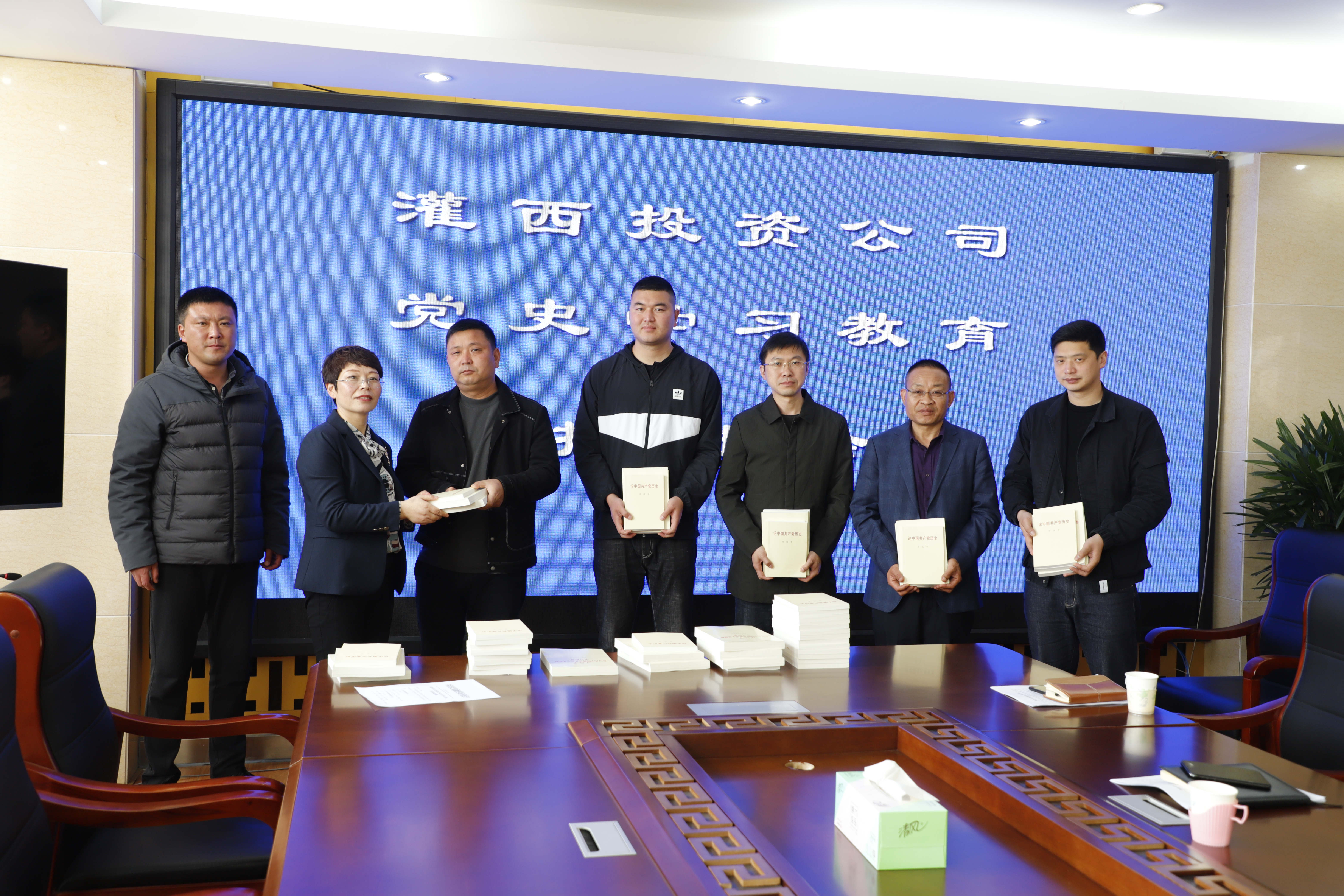 会议结束,党委副书记王宏赠送党史学习书籍给各个支部。(靳静)