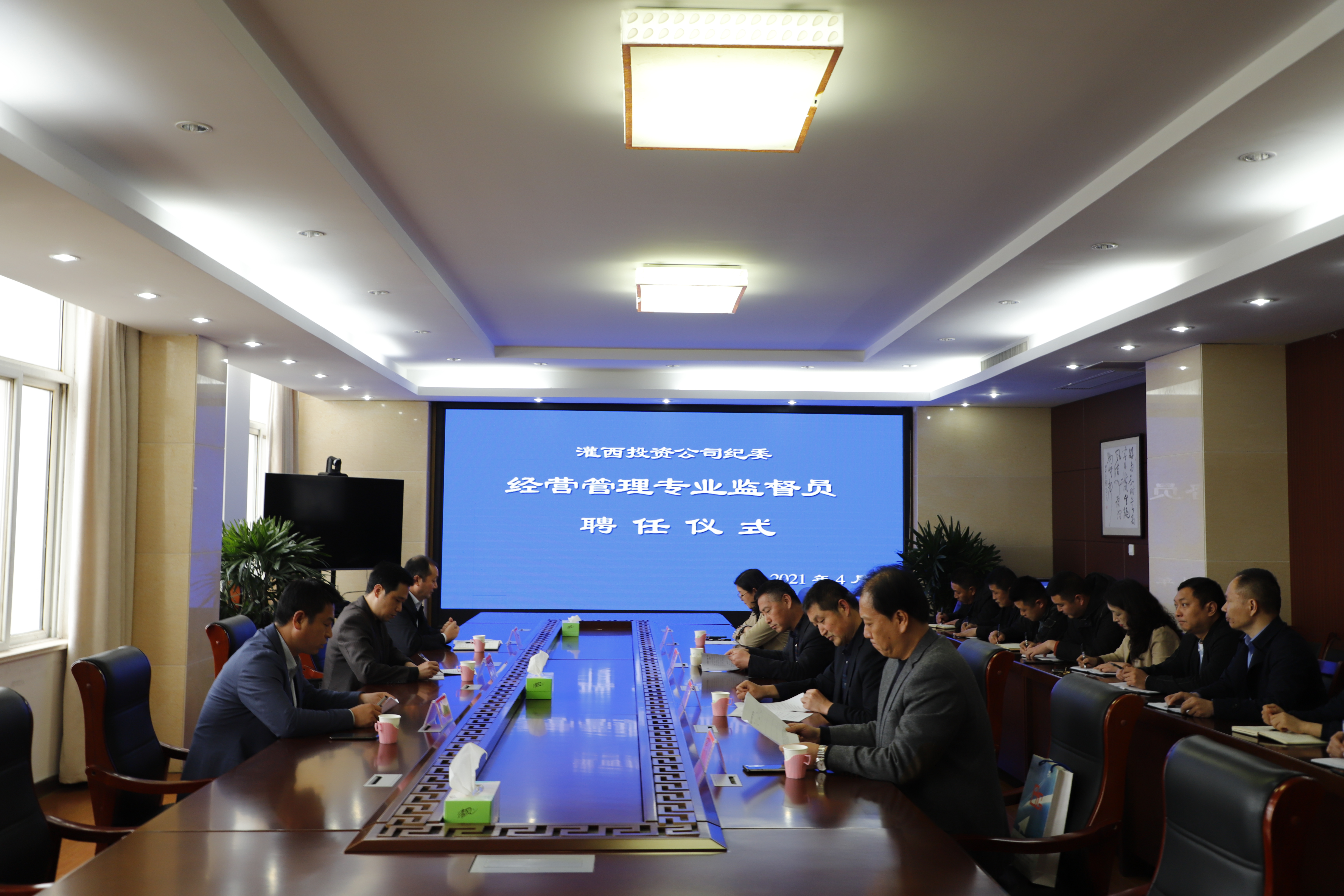 4月25日下午,灌西投资公司纪委举行经营管理专业监督员聘任仪式,华体会(中国)公司纪委副书记王建松,投资公司党委书记、董事长、总经理李国文,纪委书记朱文海,各单位专兼职纪检员、对口部门负责人参加聘任仪式。