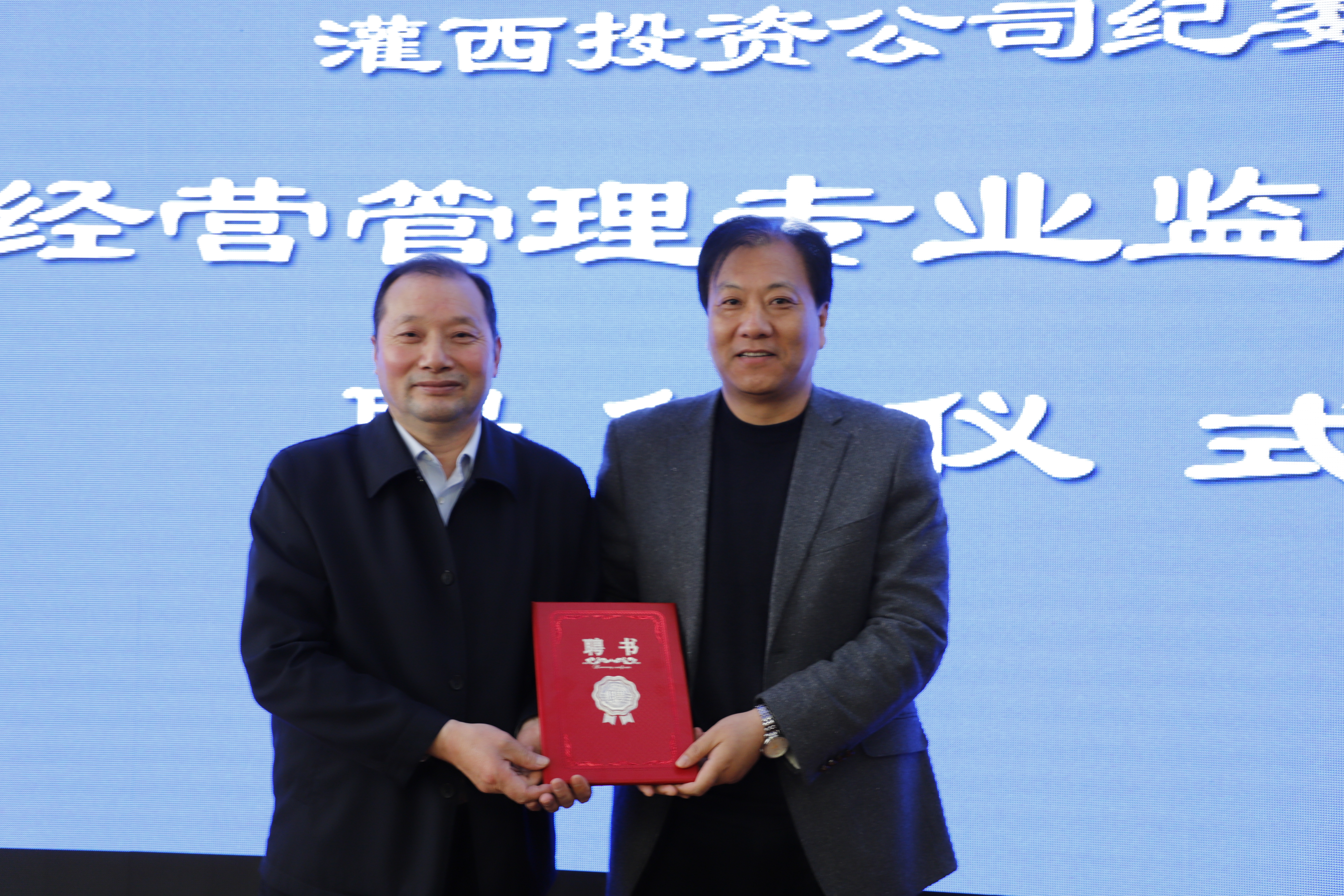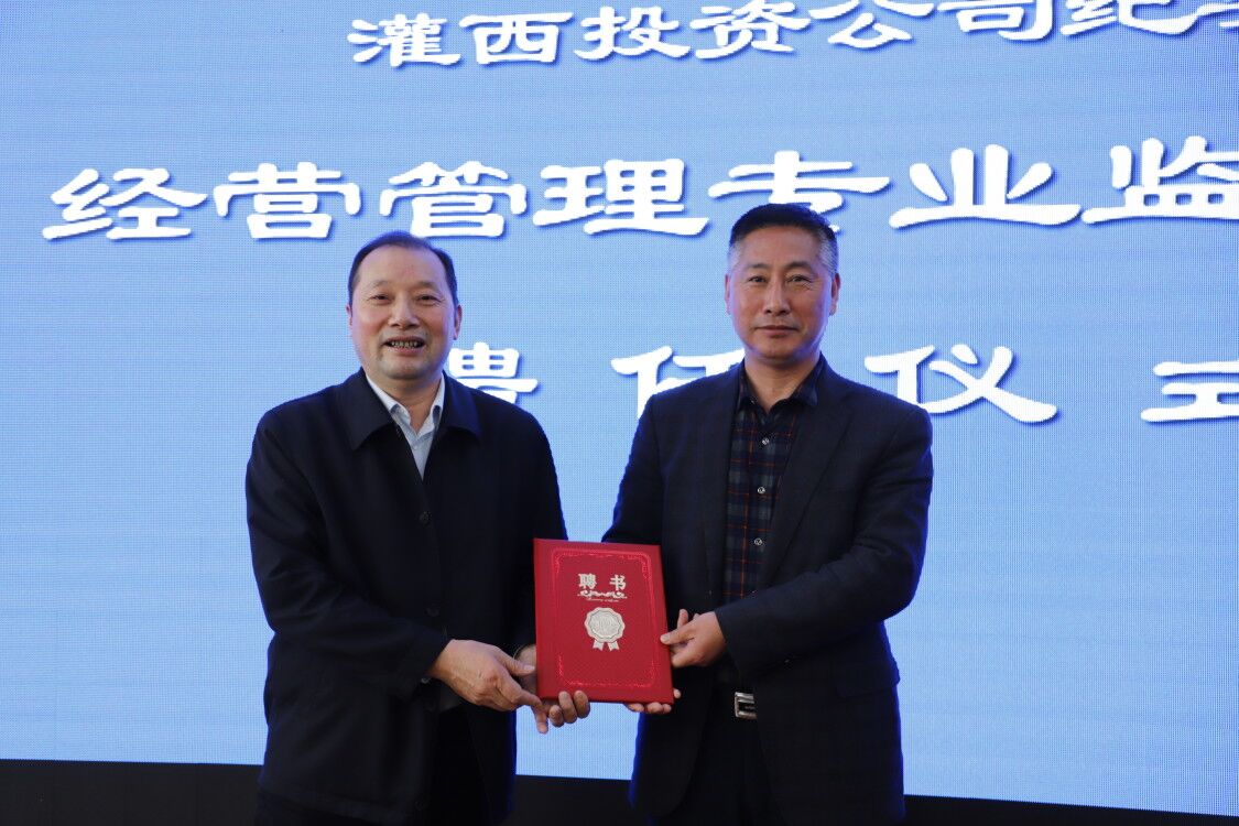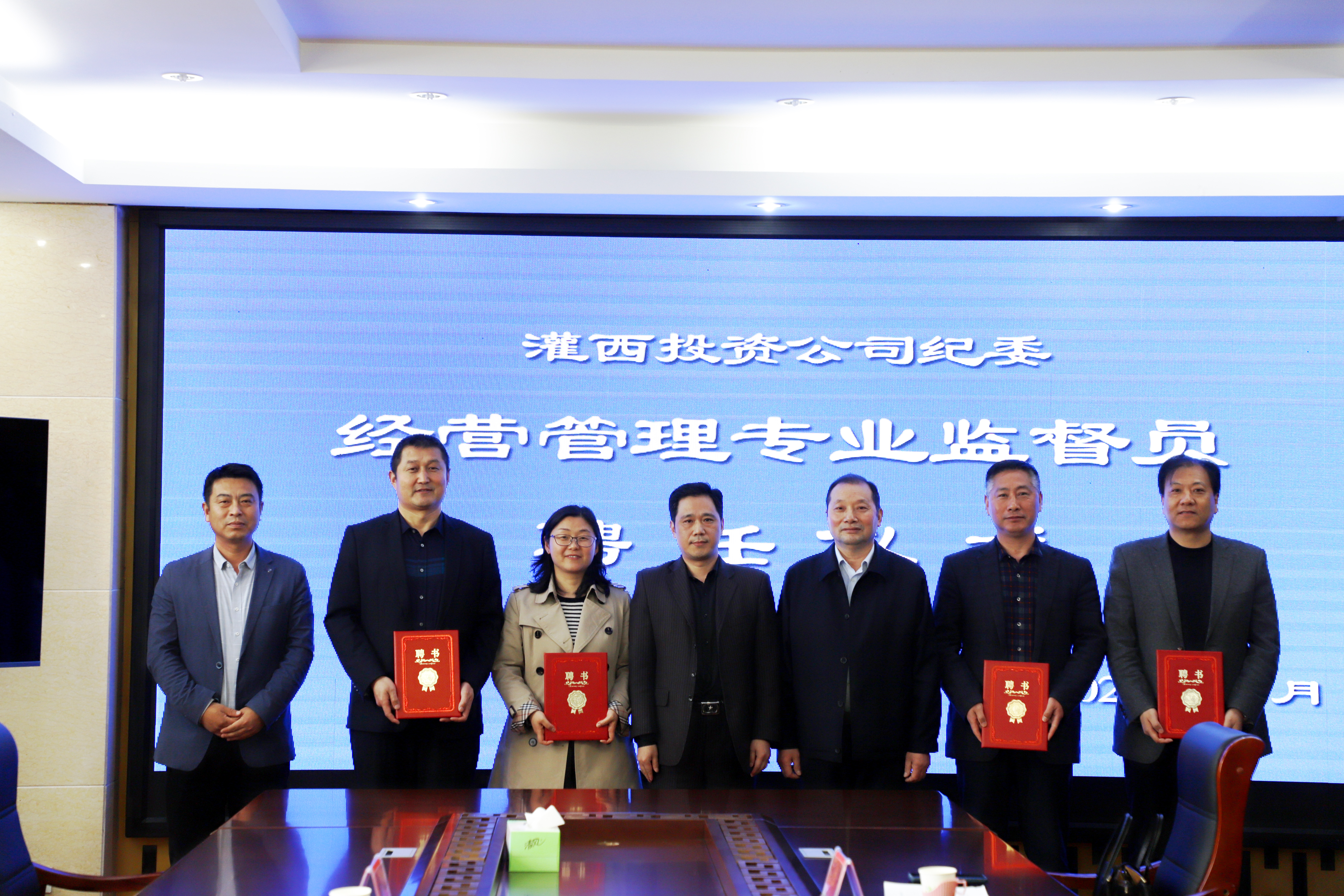 李国文代表公司党委对4名专业监督员接受聘任、关心支持灌西党风廉政建设表示衷心感谢。他指出,要提高思想站位,充分认识经营管理专业监督员工作的重要性;要履行监督职责,促进公司经营管理工作健康运行;要加强组织领导,确保经营管理专业监督员顺利开展工作;要从大局出发,主动接受监督,为推动灌西投资公司全面从严治党和党风廉政建设发挥积极作用。