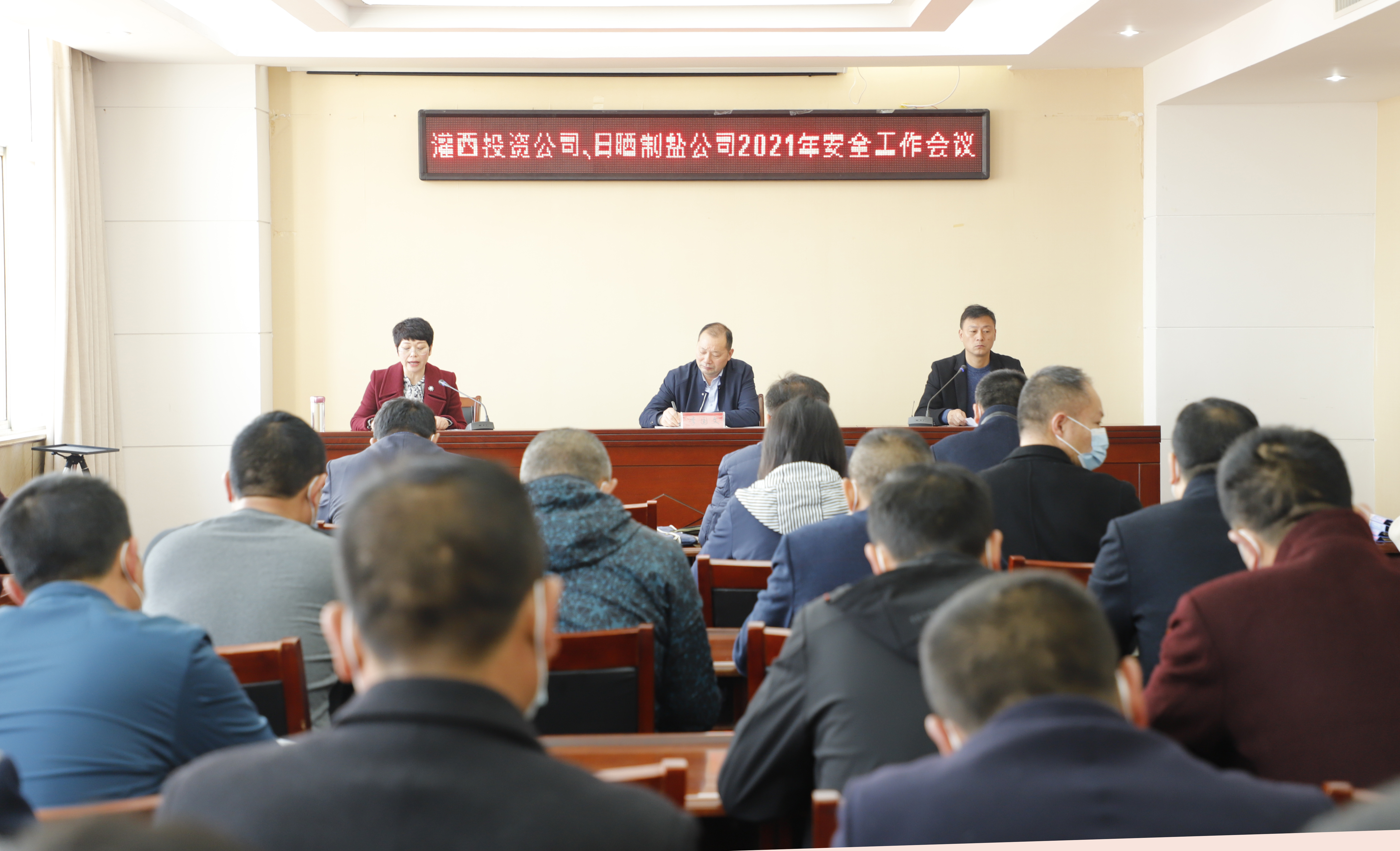 常务副总经理吴卫平首先回顾总结了2020年度安全生产工作,过去的一年,灌西投资公司、日晒制盐公司坚持“安全第一、预防为主、综合治理”方针,深入贯彻落实安全发展理念,牢固树立安全红线意识,强化现场监督监管、深化隐患排查治理、细化安全责任,持续完善安全标准化管理体系,以制度化、标准化、规范化、系统化的方式推进安全生产工作,安全生产管理水平不断提高。他强调,2021年要强化责任意识,提高安全责任体系覆盖面;强化预防意识,提高教育培训体系覆盖面;强化“本质”意识,提高隐患闭环管理覆盖面;强化“双基”意识,提高制度落实覆盖面。强化“创新”意识,提高基层技能覆盖面。抓好安全生产工作,是公司发展的根本和基础。做到思想到位、责任到位、执行到位、措施到位、检查到位、治理到位、落实到位,确保了公司安全生产形势持续稳定。